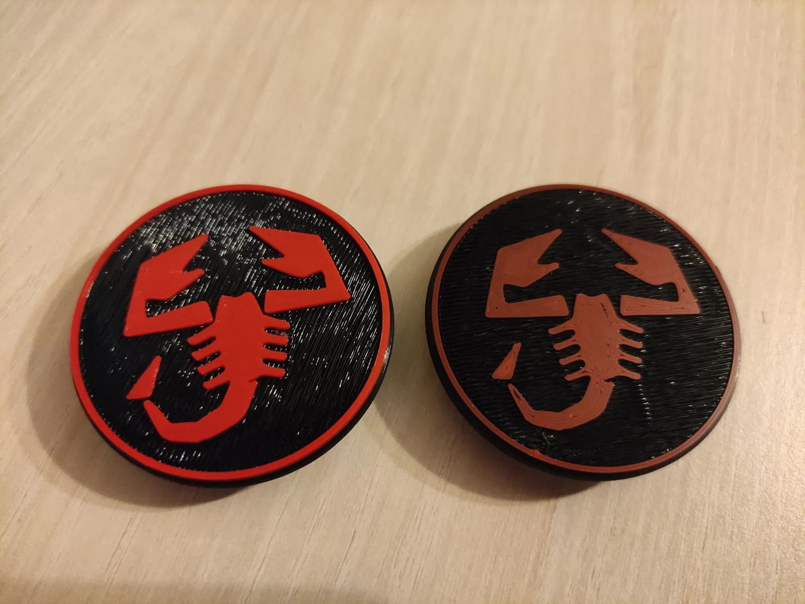 Phiên bản đầu tiên (abarth_cover_lower) có biểu tượng thấp hơn, vì lý do này, màu đen đã chiếu qua biểu tượng bọ cạp và trông không đẹp mắt.