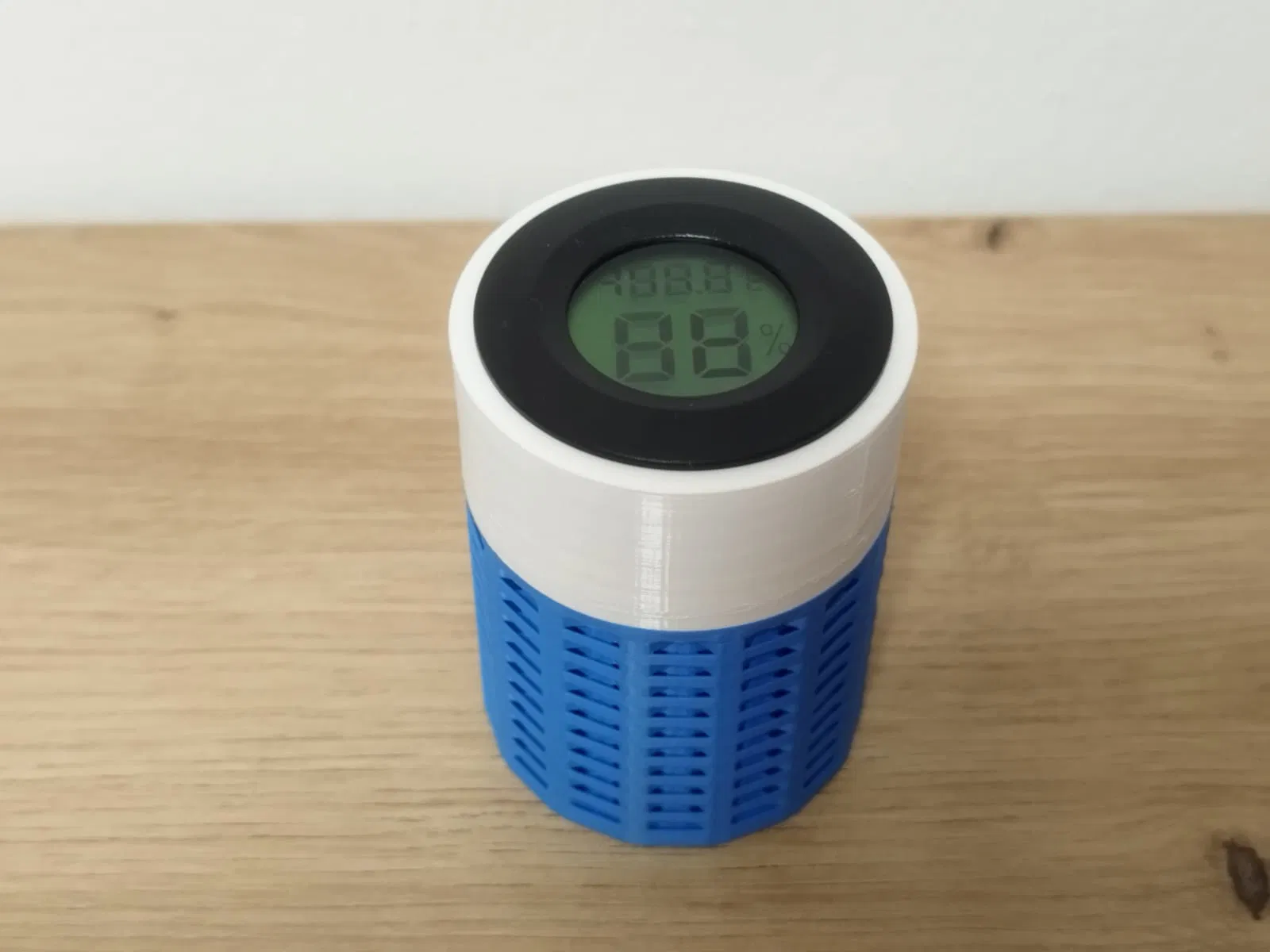 Nắp này vừa với máy đo độ ẩm tròn phổ biến. Nó cao hơn nắp thường 15mm. Với máy đo độ ẩm, tổng chiều cao của hộp tăng thêm 17mm.
