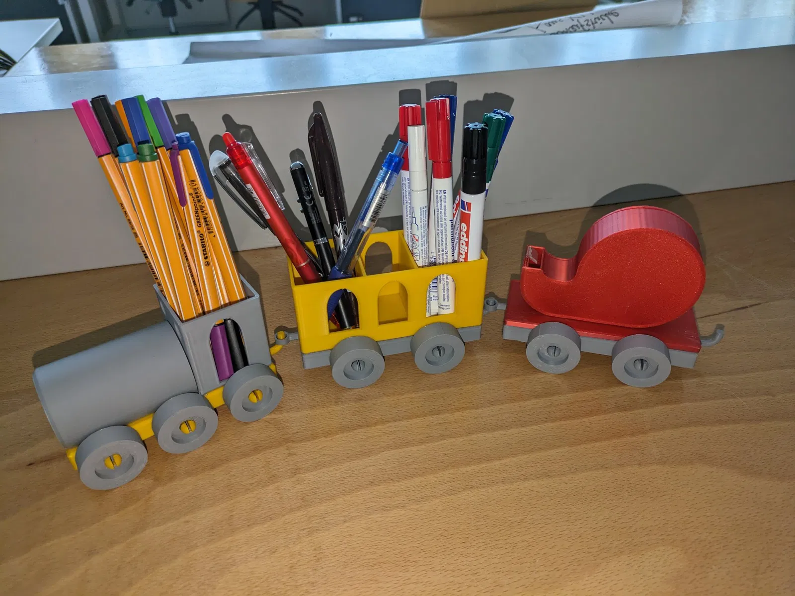 Đây là một cấu trúc xe bổ sung đầu tiên cho tàu văn phòng của tôi. Máy cắt băng dính cũng có thể được in riêng nếu bạn chỉ muốn sử dụng nó như vậy. Mô hình đã được in bằng Geetech HS-PLA Red. Máy in: Ankermake M5 Chiều cao lớp: 0.1mm Tốc độ: 500mm/s (theo Ankermake) Nhiệt độ in: 220°C Nhiệt độ bàn in: 60°C Bạn có thể tìm thấy toa xe kéo dưới đây: https://www.f3d.vn/3d-model/10603-xe-lua-van-phong-da-nang-va-do-choi-cho-tre-em