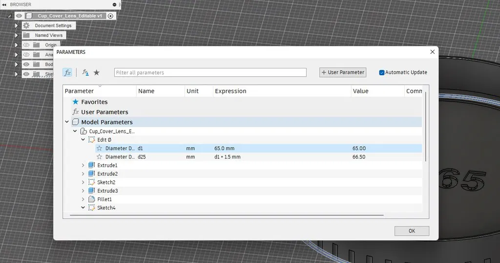 Nắp ống kính có thể tùy chỉnh cho mọi loại ống kính. Bạn có thể thay đổi kích thước và văn bản Ø trực tiếp trong các tham số hoặc sketche. Lưu ý điều chỉnh đường kính bên trong nếu cần thiết để phù hợp với máy in của bạn. In với PLA đen, không cần raft hay supports, độ phân giải 0.2mm và 15% infill.
