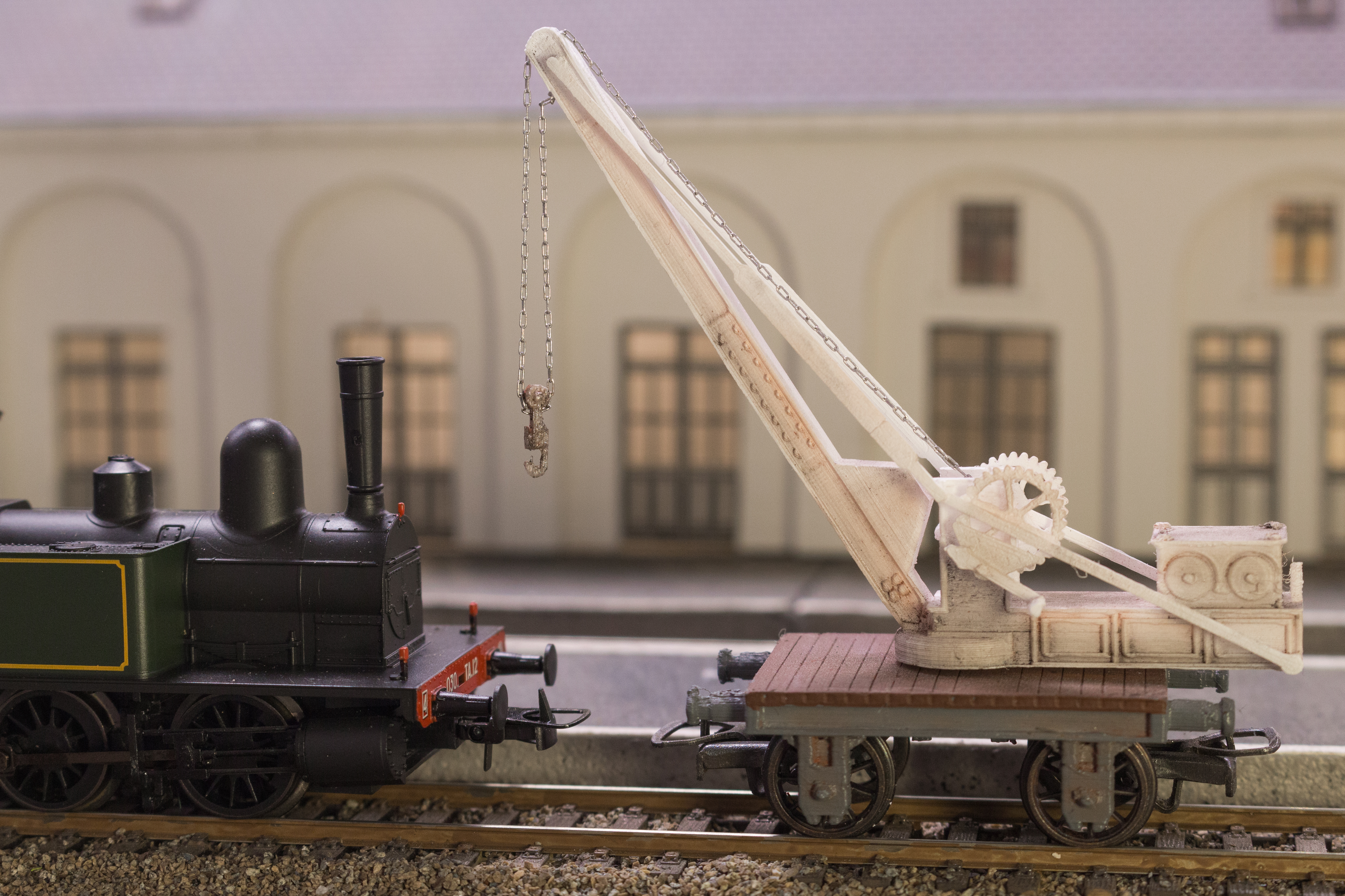 Mô hình cần cẩu đường sắt khổ HO, có thể in bằng máy in sợi nhựa. Thiết kế này sẽ có bài viết giới thiệu chi tiết trên tạp chí [_Voie Libre_] số 108. Rất thích hợp cho người chơi mô hình đường sắt.