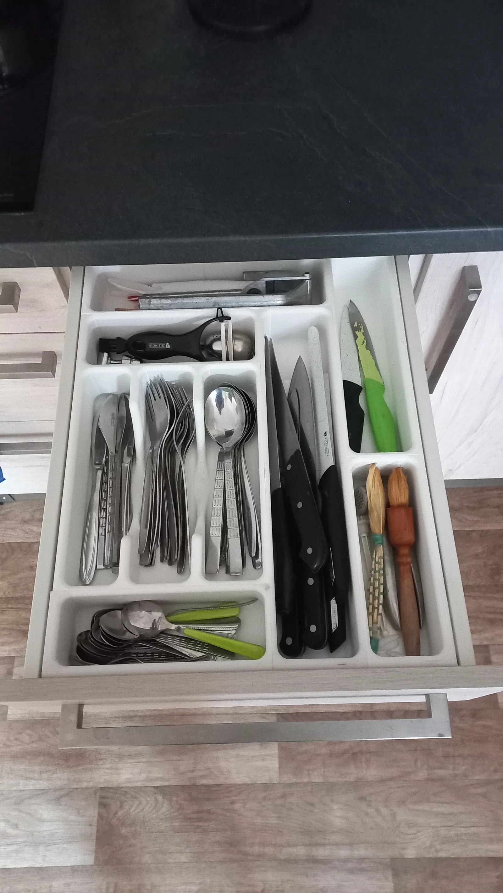 Bộ sắp xếp dao nĩa dạng module. Tất cả các module được nối với nhau bằng các bộ phận kết nối thành một khối.