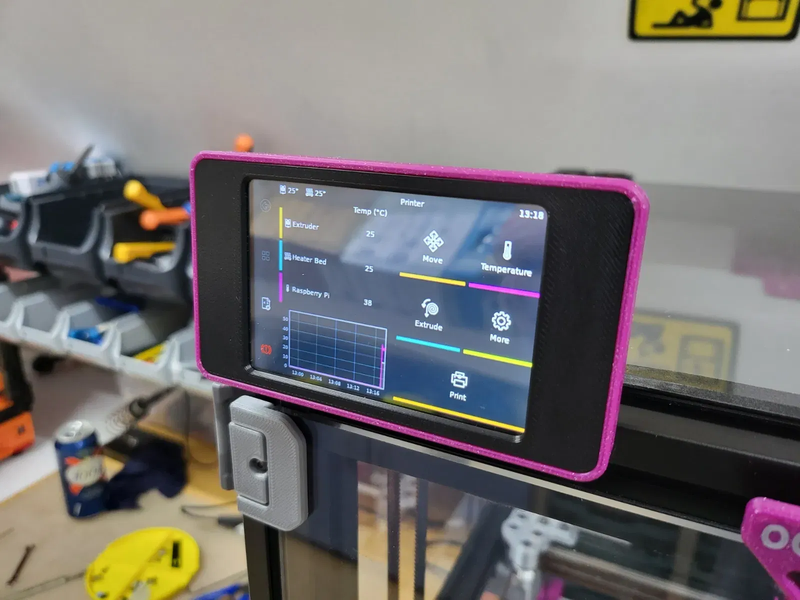 Tôi đã thấy việc đặt màn hình hiển thị cao hơn trên khung, dễ sử dụng hơn nhiều so với màn hình hiển thị thấp tiêu chuẩn, yêu cầu phải cúi xuống để xem trong hầu hết các trường hợp. Màn hình khá nhỏ nhưng tôi thấy rất hữu ích sau một thời gian sử dụng\thực hành. Nút quay lại bên phải và nút menu có thể hơi khó sử dụng trên màn hình có kích thước này. Một điều chỉnh firmware có thể giúp ích cho việc này. Tôi có thể xem xét điều này vào một lúc nào đó.