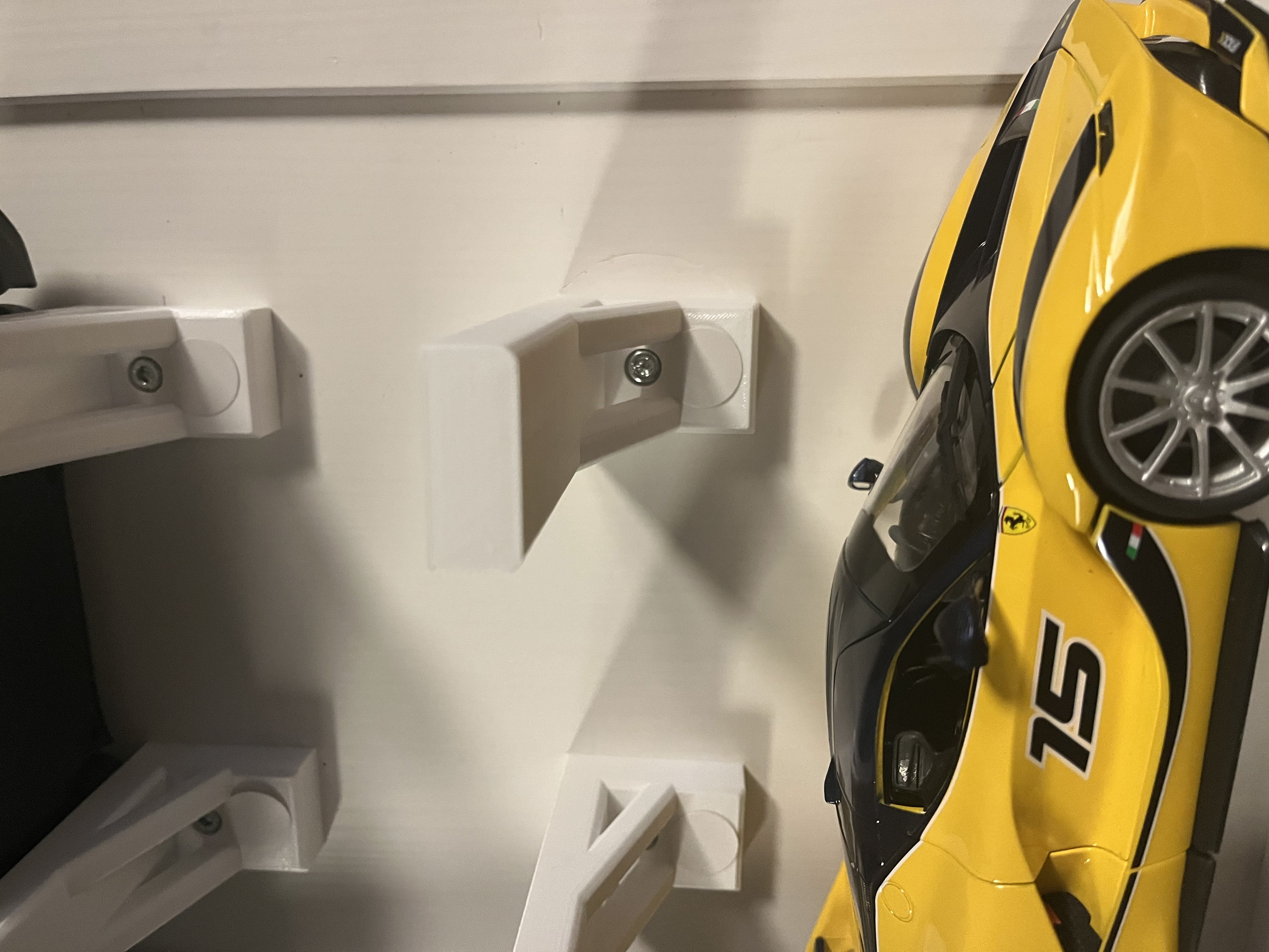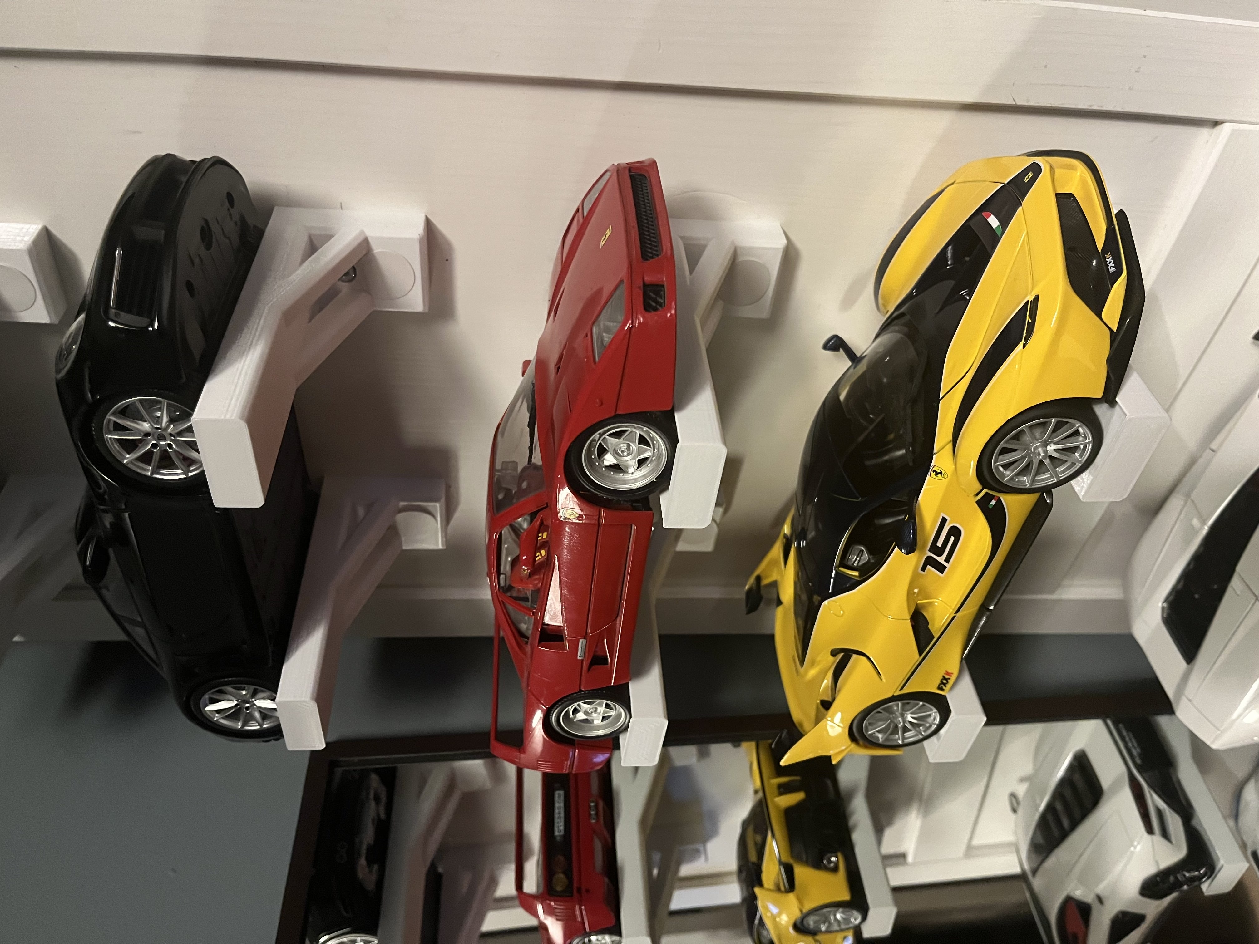 Trưng bày xe mô hình diecast của bạn trên tường, hoặc bất kỳ bề mặt thẳng đứng nào bằng thiết kế kệ đơn giản và tiết kiệm vật liệu này. Phù hợp với mọi loại xe tỉ lệ 1:18, có thể tùy chỉnh kích thước cho phù hợp.