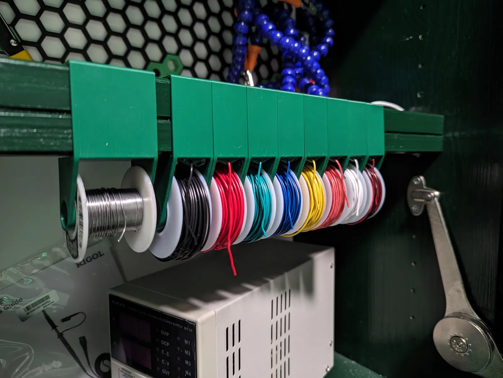 Cái kẹp giữ cuộn thiếc hoặc cuộn dây này gắn vô bàn Ikea Ivar. Phiên bản 2 đã được cải tiến nhiều, có thể tùy chỉnh kích thước theo cuộn dây của bạn.