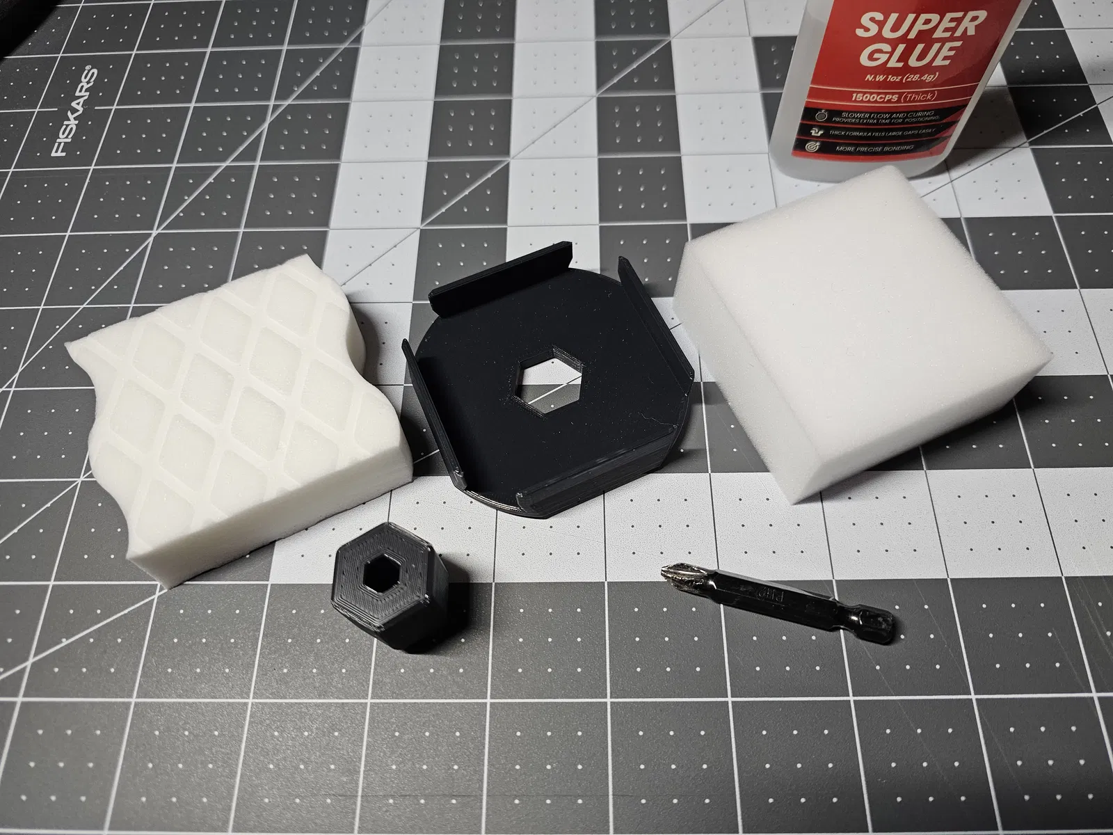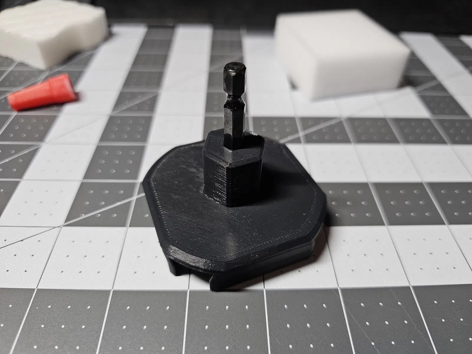 Giá đỡ bọt biển tẩy xoá ma thuật cho máy khoan với mũi lục giác ¼ inch. Giúp dễ dàng tẩy vết ố nước và cặn xà phòng trên cửa kính phòng tắm. Chỉ cần in ra, lắp vào máy khoan và bắt đầu làm sạch!