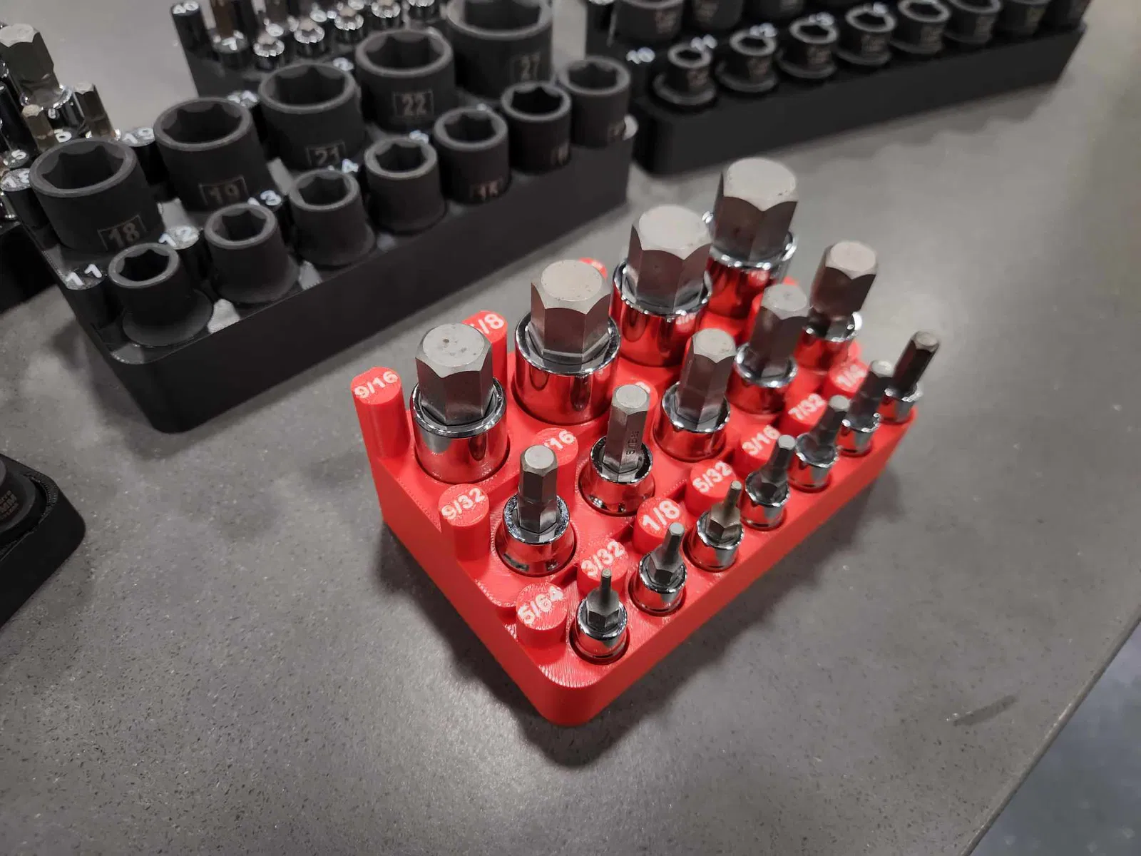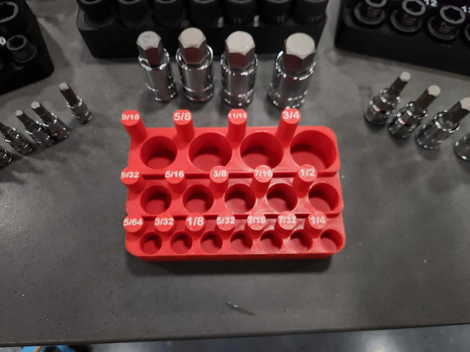 Khay đựng đầu vặn lục giác tiêu chuẩn, được thiết kế cho bộ đầu lục giác Lexivon bán trên Amazon. Có thể in bằng ABS, PLA hoặc PETG, cho phép tùy chọn màu sắc đa dạng.