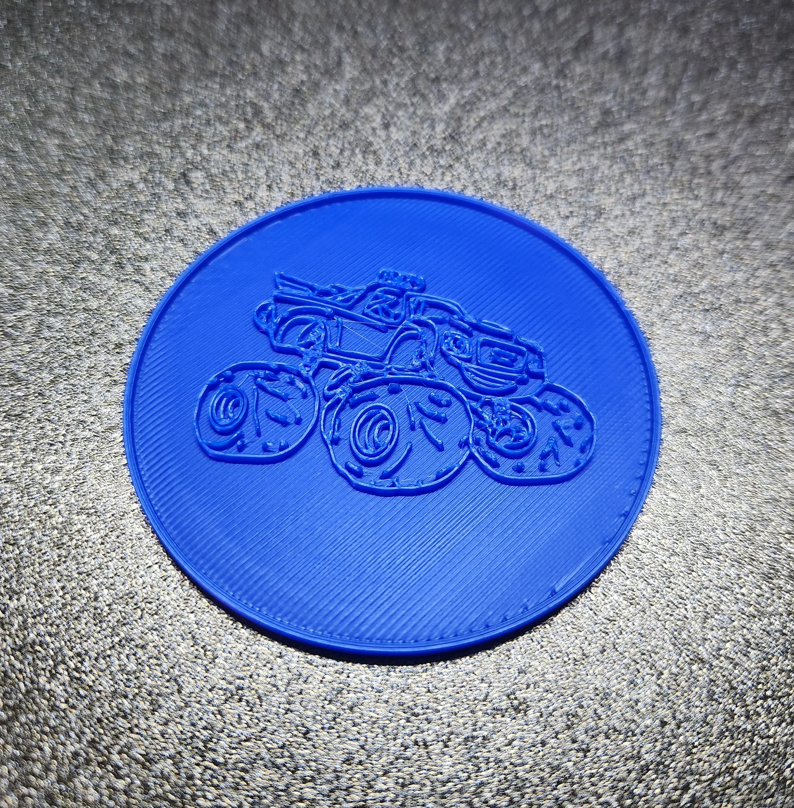 Con trai tui nó muốn có thêm cái "coin" nữa mà cái show nó thích nhất là Blaze. Để mấy cái đường viền cho nó chuẩn á, tui in cái này ở đường kính 60mm với độ dày 2mm (1mm trong số này là cái vành xung quanh và cái hình để tạo hiệu ứng đẹp). Dĩ nhiên là có thể scale lớn nhỏ tùy ý, nhưng mà tui hông có chắc là scale nhỏ lại nó có ra đẹp không. Cái token này hông có chữ đâu, nhưng mà có đủ chỗ để dập nổi (hoặc dập chìm) á. Tui in bằng cái nozzle 0.4mm, lớp dày 0.20mm.