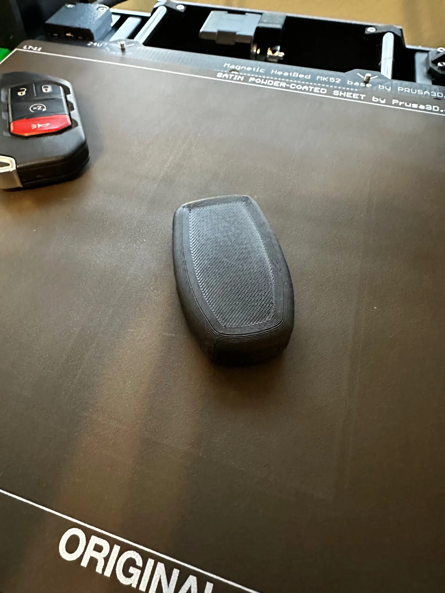 - Số lớp Top Interface: 3 Với các cài đặt đó, support gỡ ra khá dễ dàng. Tôi đã in thử bằng PLA+ và nó hoạt động rất tốt. CHỈNH SỬA: Theo yêu cầu của @peterprina_1636626, tôi đã thêm file “KeyFobTop_NoButtons” cho phiên bản móc chìa khóa không có nút bấm. Hãy sử dụng file này cùng với file KeyFobBottom. Tôi chưa thử nghiệm file này.