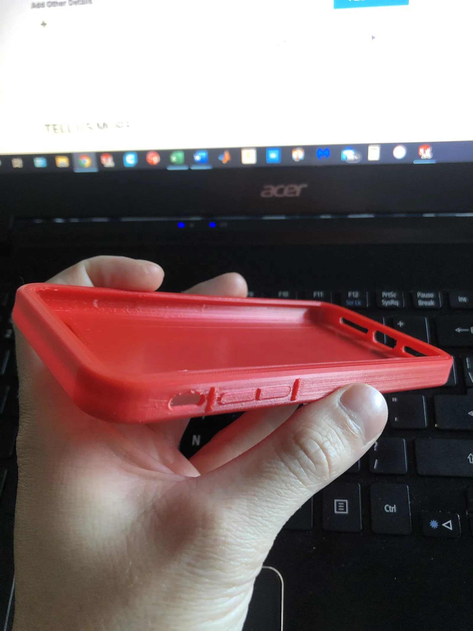 In với mặt sau úp xuống bằng TPU ở độ cao lớp 120 hoặc 200um. Độ đặc ruột có thể thay đổi tùy thuộc vào độ dẻo bạn muốn của ốp lưng. Ví dụ: 20% thì rất dẻo và dễ lắp, còn 100% thì cứng hơn nhiều.