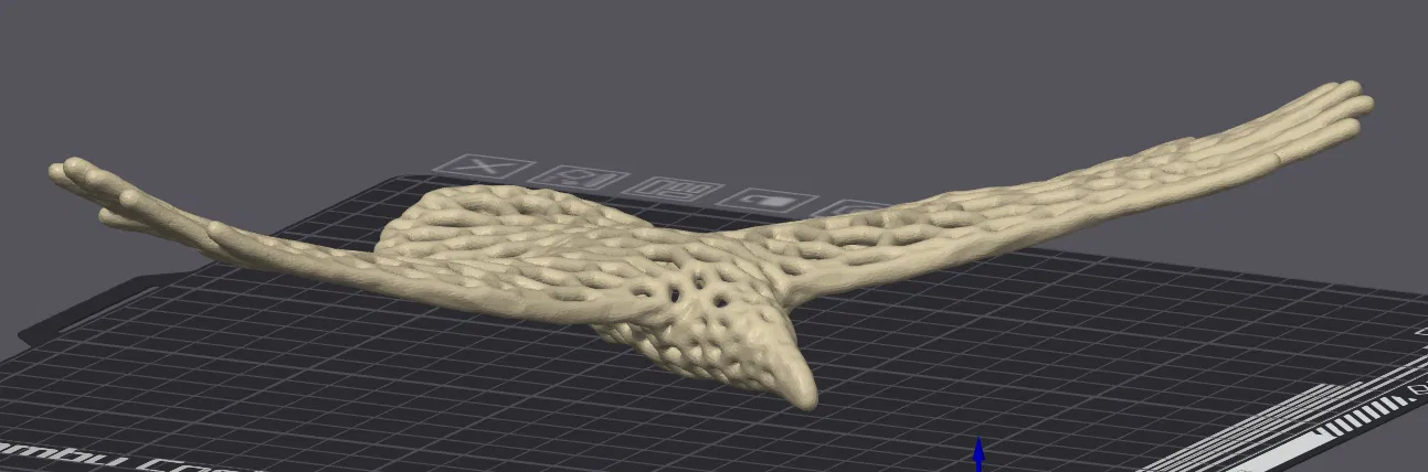 Đây là phiên bản Quạ Bay theo phong cách Voronoi. Để có kết quả tốt nhất, hãy in kèm giá đỡ và sử dụng nhiều mức chiều cao lớp khác nhau.