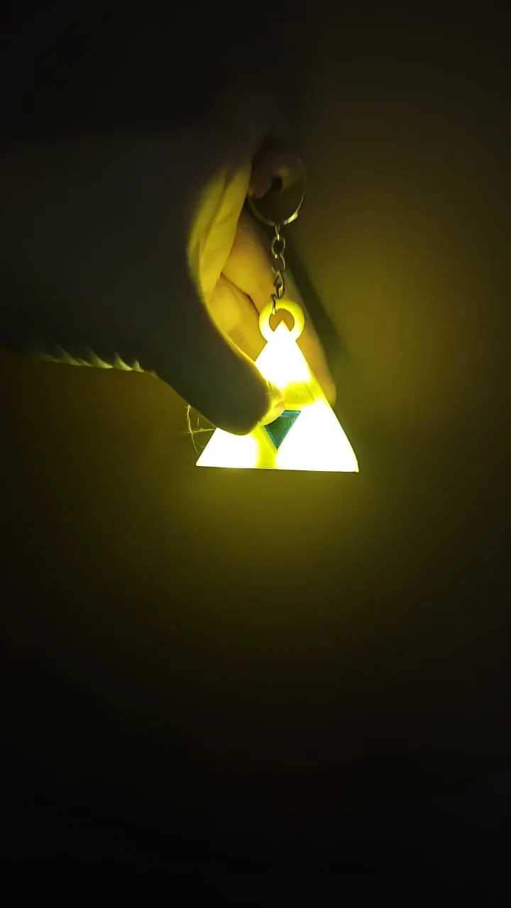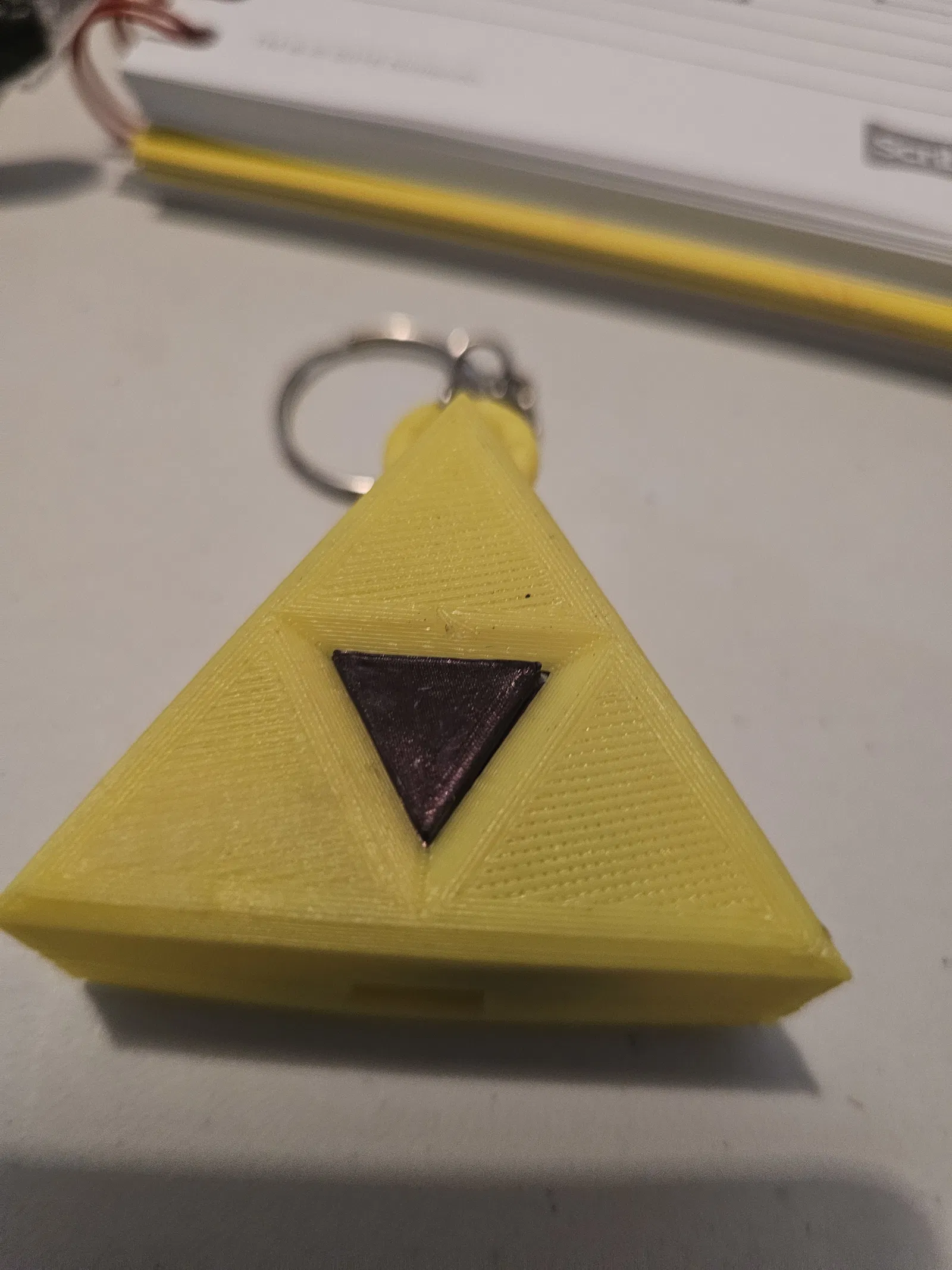 Móc khóa Triforce có đèn LED bên trong, bấm nút để bật đèn. Đã cập nhật file nút mới để in tốt hơn với cài đặt chi tiết.
