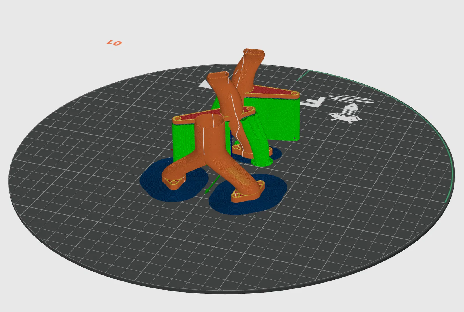 Bạn nên in với 3 lớp biên, 3 lớp trên và dưới. Lượng điền đầy (infill) là 15% Gyroid. Tôi dùng supports dạng cây lai (hybrid tree supports) chỉ từ bed và kèm theo brim. Phần gioăng (gasket) được in bằng TPU 95a và là tùy chọn.