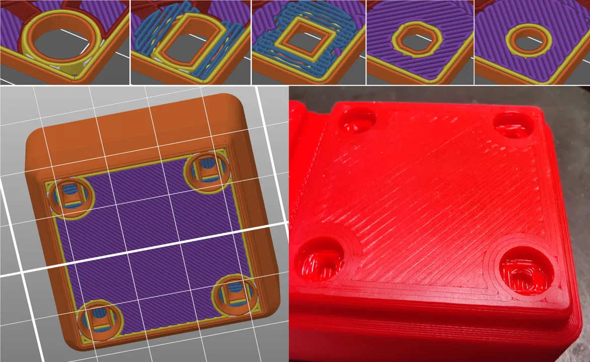 Trong tất cả các tùy chọn trên, giải pháp dùng một lớp duy nhất có lẽ là tôi thích nhất. Tuy nhiên, template được cung cấp ở đây bổ sung thêm một giải pháp khác, cho phép in các lỗ ở giữa không khí mà không cần thay đổi bất kỳ cài đặt nào.