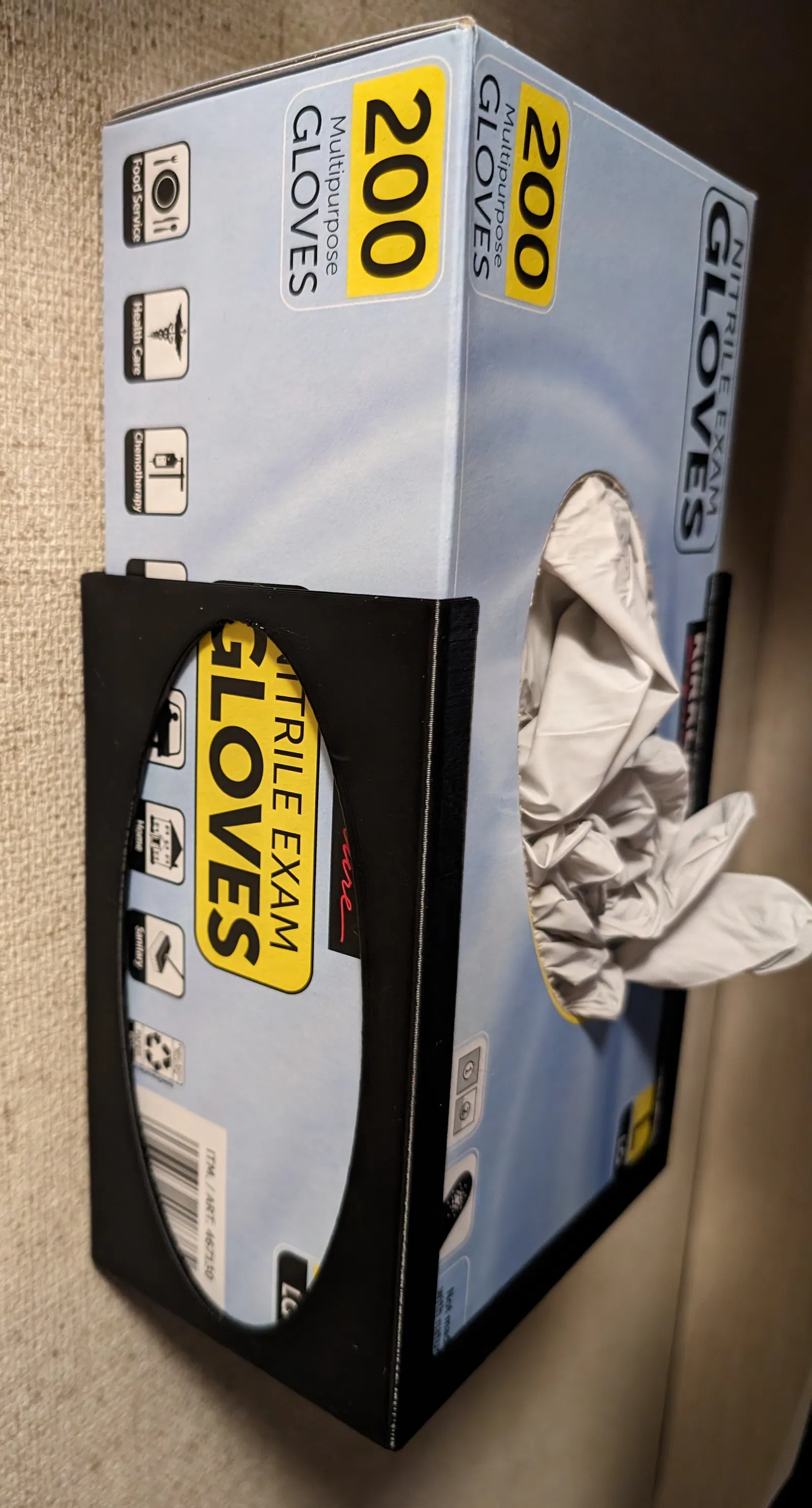 Hộp đựng găng tay treo tường này được thiết kế để đựng vừa vặn hộp 200 cái găng tay nitrile Kirkland của Costco. Giải pháp lưu trữ tiện lợi, giúp bạn dễ dàng lấy găng tay khi cần.