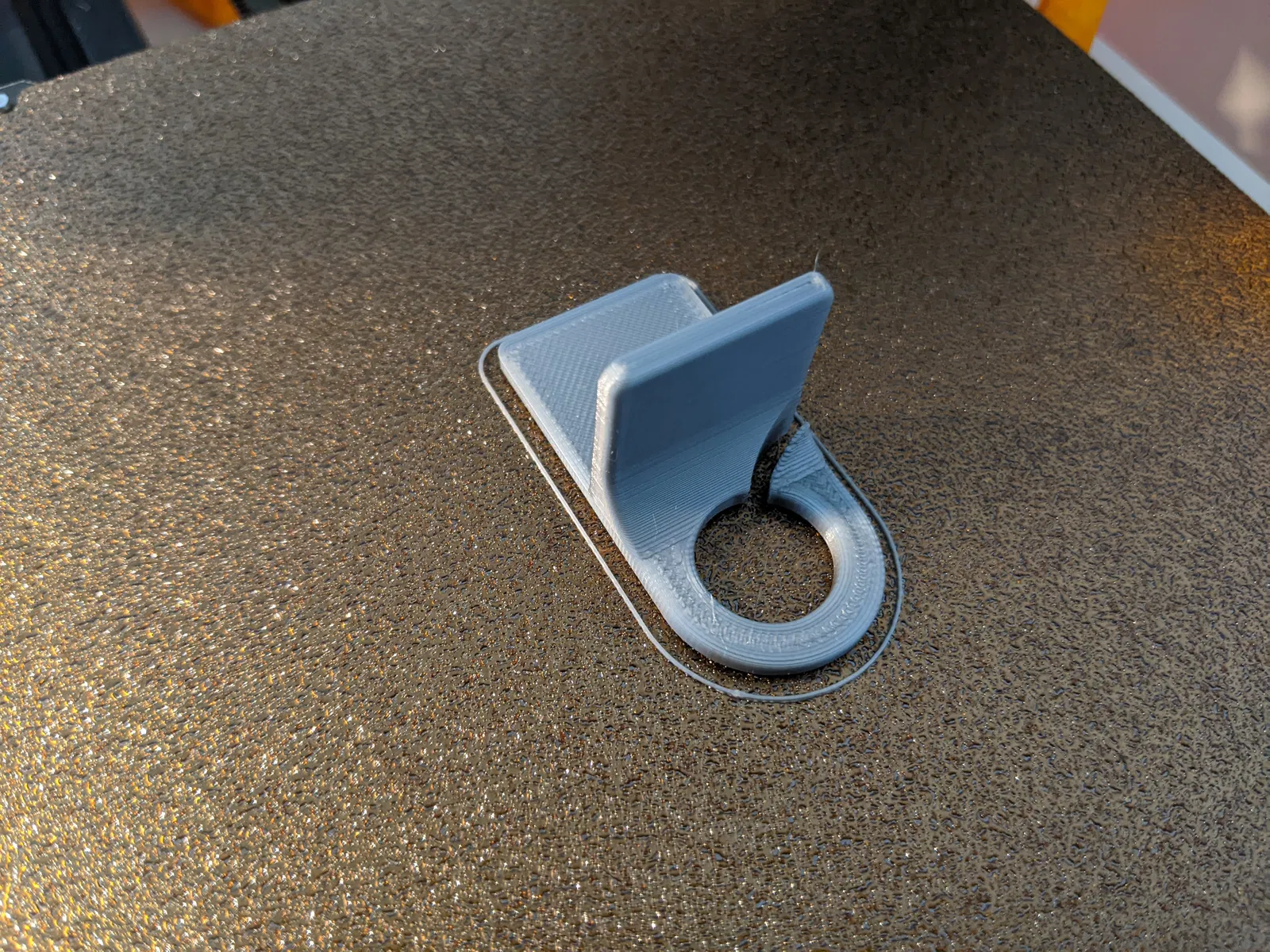 Tui để cuộn dây tóc phía sau máy Prusa Mini của tui và nó cạ vào dây cáp với máy in, nên tui làm cái này có thể dán vô hông bàn để dẫn dây tóc nhẹ nhàng mà không cạ gì hết. Nếu bạn muốn cái rãnh theo hướng khác thì cứ xoay gương nó trong phần mềm slicer nha. Có bản không có rãnh luôn.