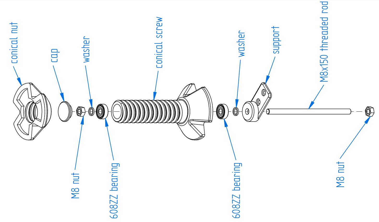 - Gắn ốc côn vào thanh ren và siết chặt cụm bằng đai ốc M8
