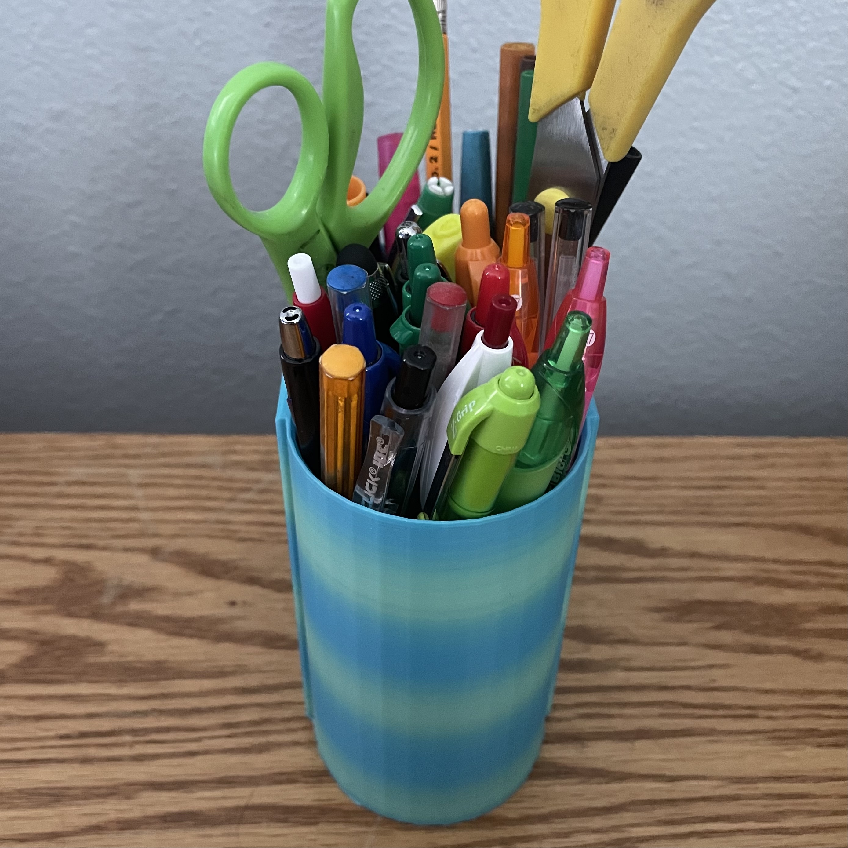 Khay đựng đồ dùng bàn làm việc đơn giản, có một chỗ tròn và một chỗ vuông để chứa tất cả Bút, Bút Chì, Bút Lông và nhiều hơn nữa. Thiết lập gợi ý cho máy Creality Ender 3 V3 SE với sợi PLA, 40% infill, không supports.