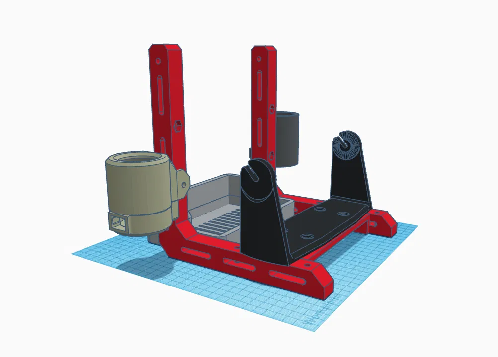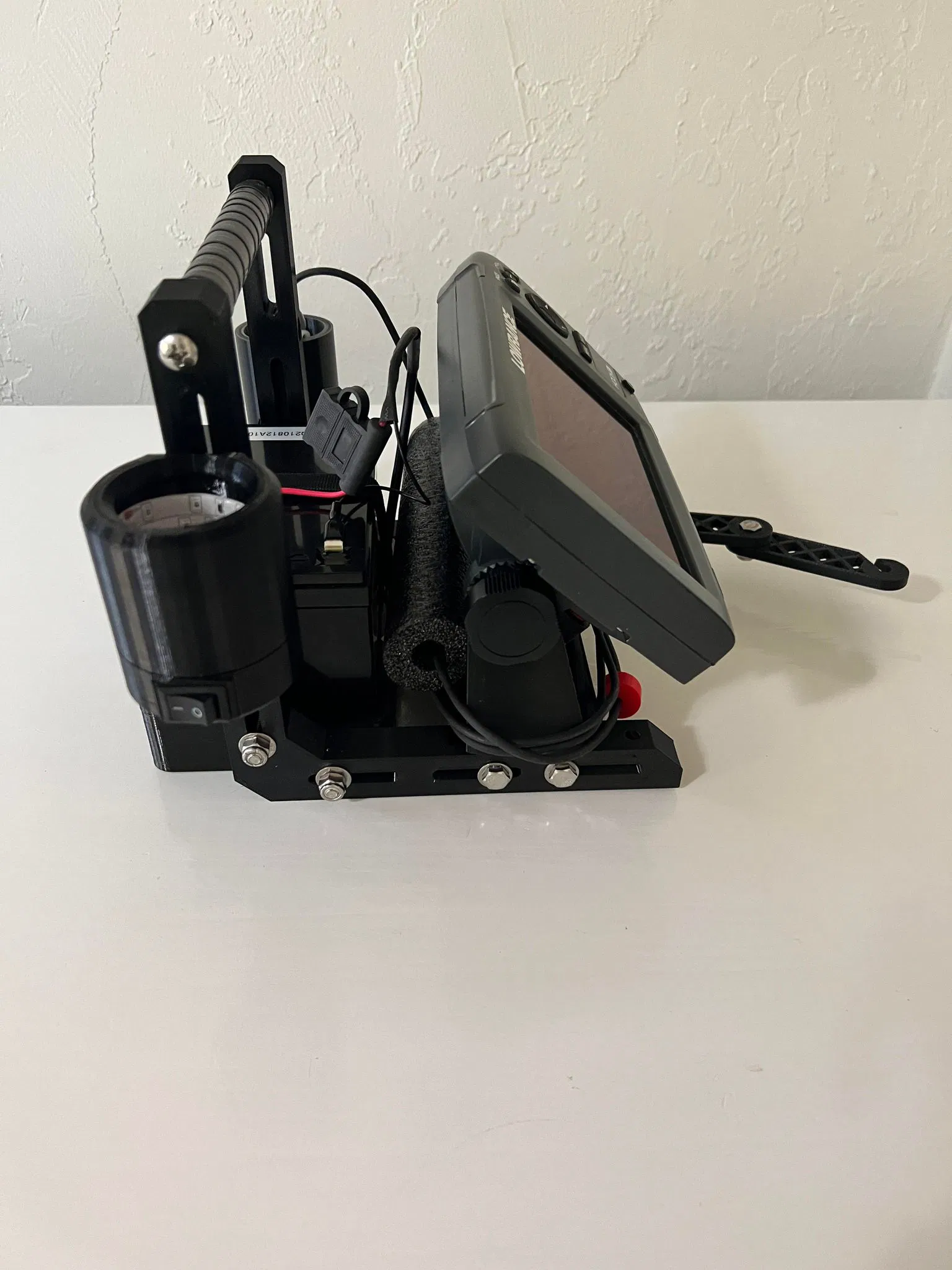 Tàu con thoi câu cá băng có thể tháo rời này, được in hoàn toàn bằng Petg, sử dụng các bộ phận được thiết kế trong Tinkercad. Nó tương thích với Lowrance Hook7 và bao gồm các bộ phận như bộ giữ bộ chuyển dò, tay cầm, bộ giữ pin và bộ giữ cần câu băng. Các phần cứng chủ yếu là loại ¼-20 bằng thép không gỉ.