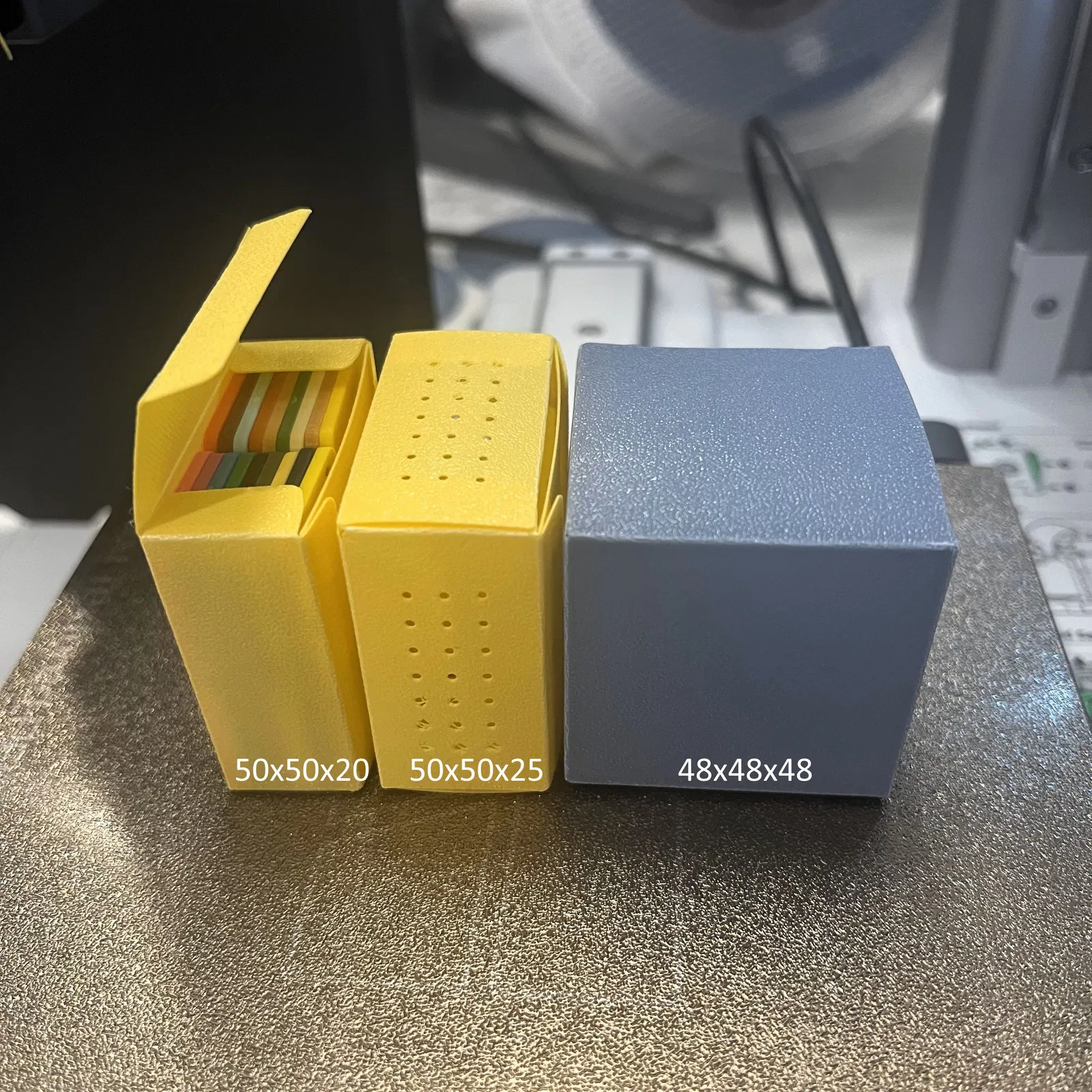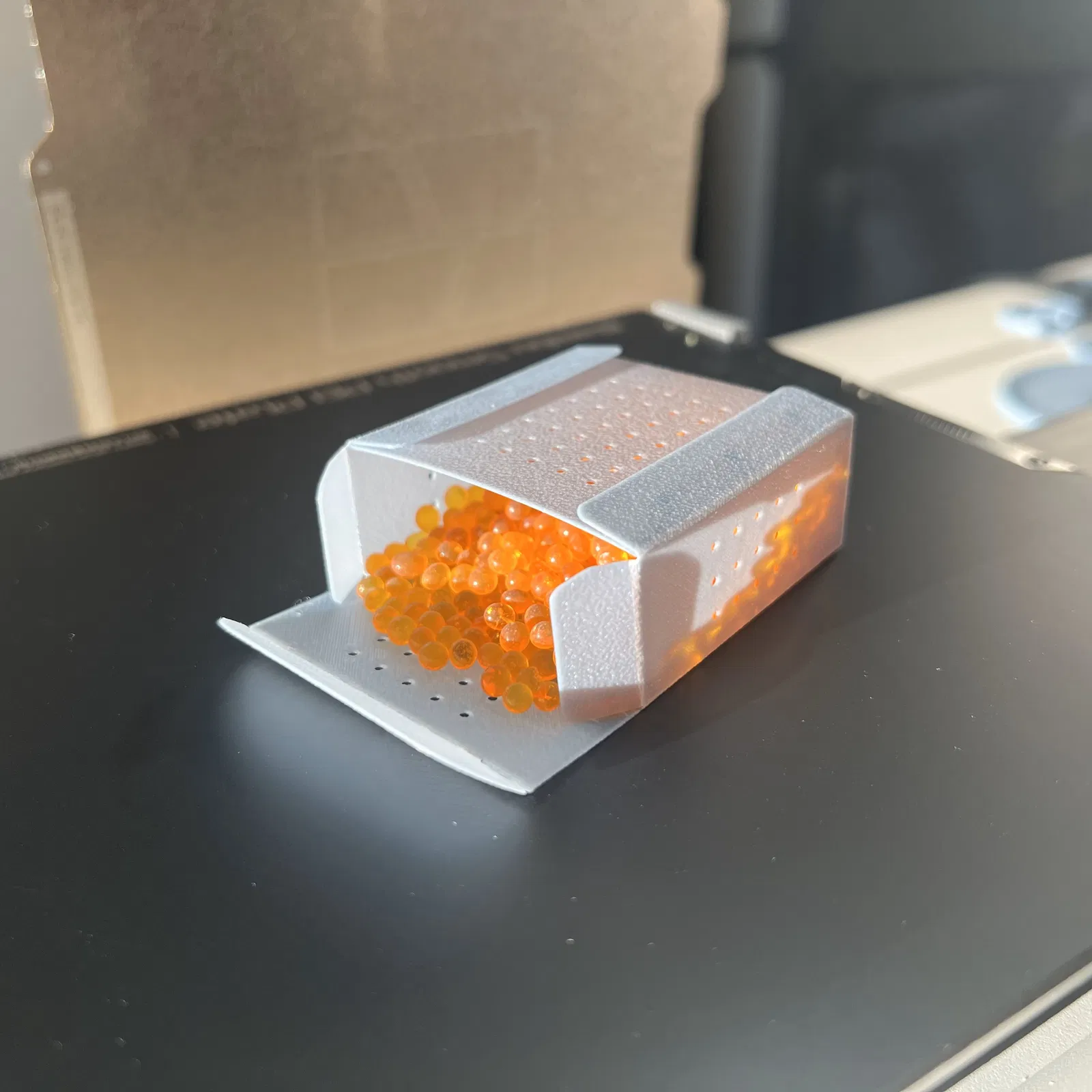 Mẫu hộp gấp 2 lớp đơn giản, hình trụ, dùng để đựng chất hút ẩm hoặc đồ vật nhỏ khác. Tiết kiệm filament, dễ lắp ráp, có thể gấp theo hai cách khác nhau. Có nhiều kích thước và kiểu dáng tùy chọn.