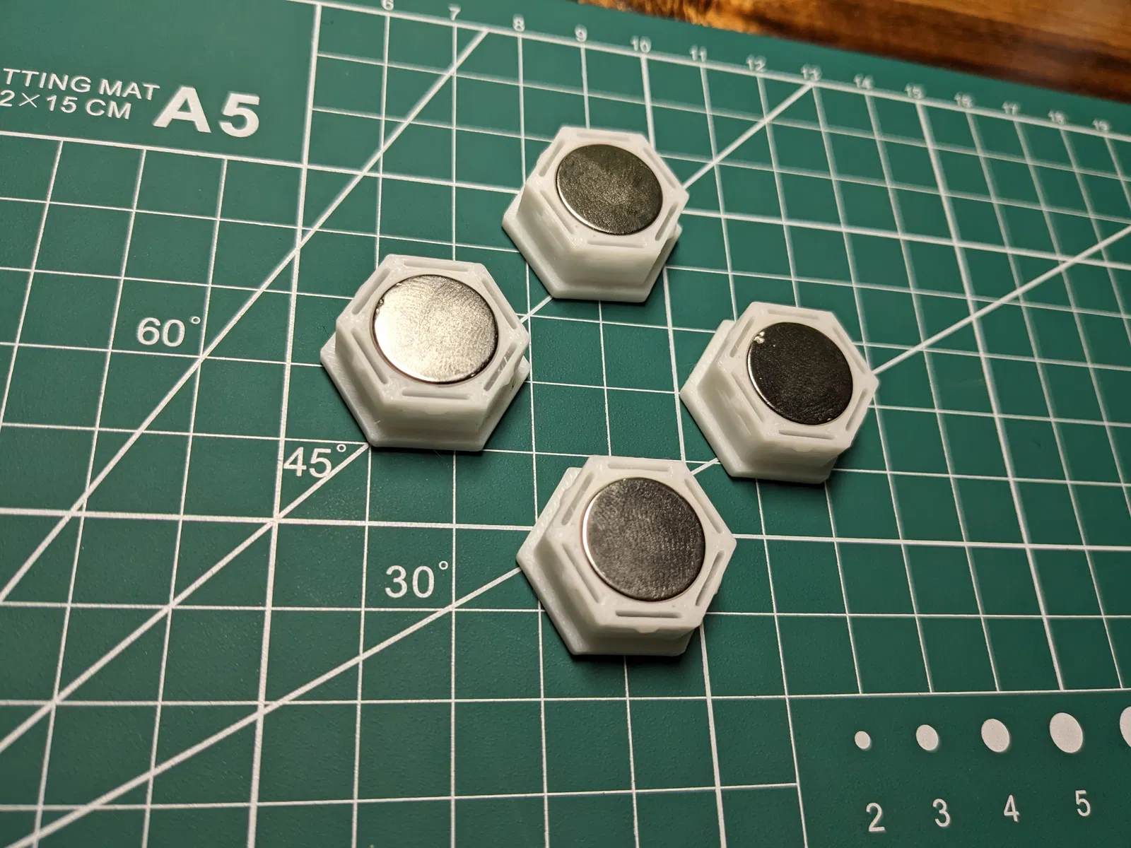 Phần Honeycomb HSW gắn nam châm 15mm. Dùng để gắn HSW lên bề mặt kim loại hoặc gắn vật kim loại lên HSW. In mặt phẳng úp xuống. Có thể cần nhiều nam châm tùy trọng lượng vật.