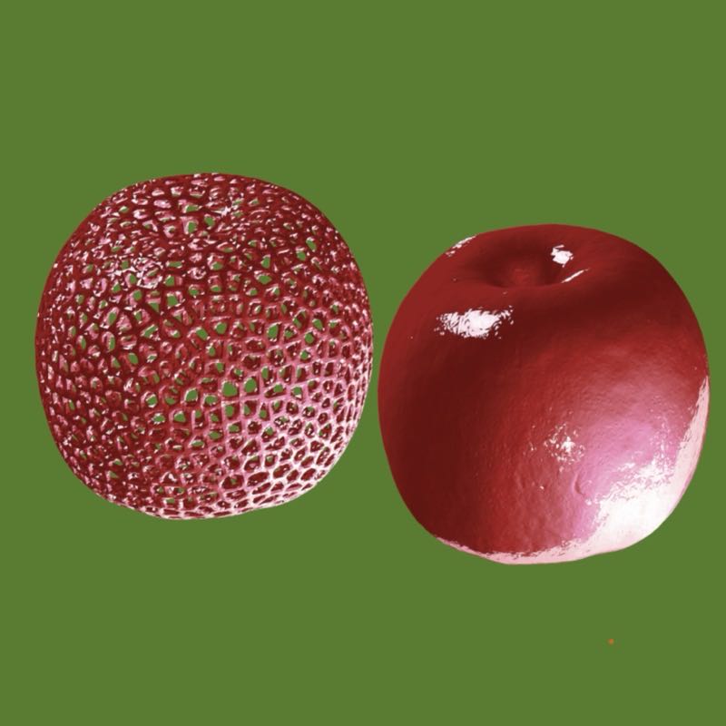 Hiệu ứng Voronoi của một quả táo được quét 3D, Bao gồm cả mô hình độ phân giải thấp và cao.