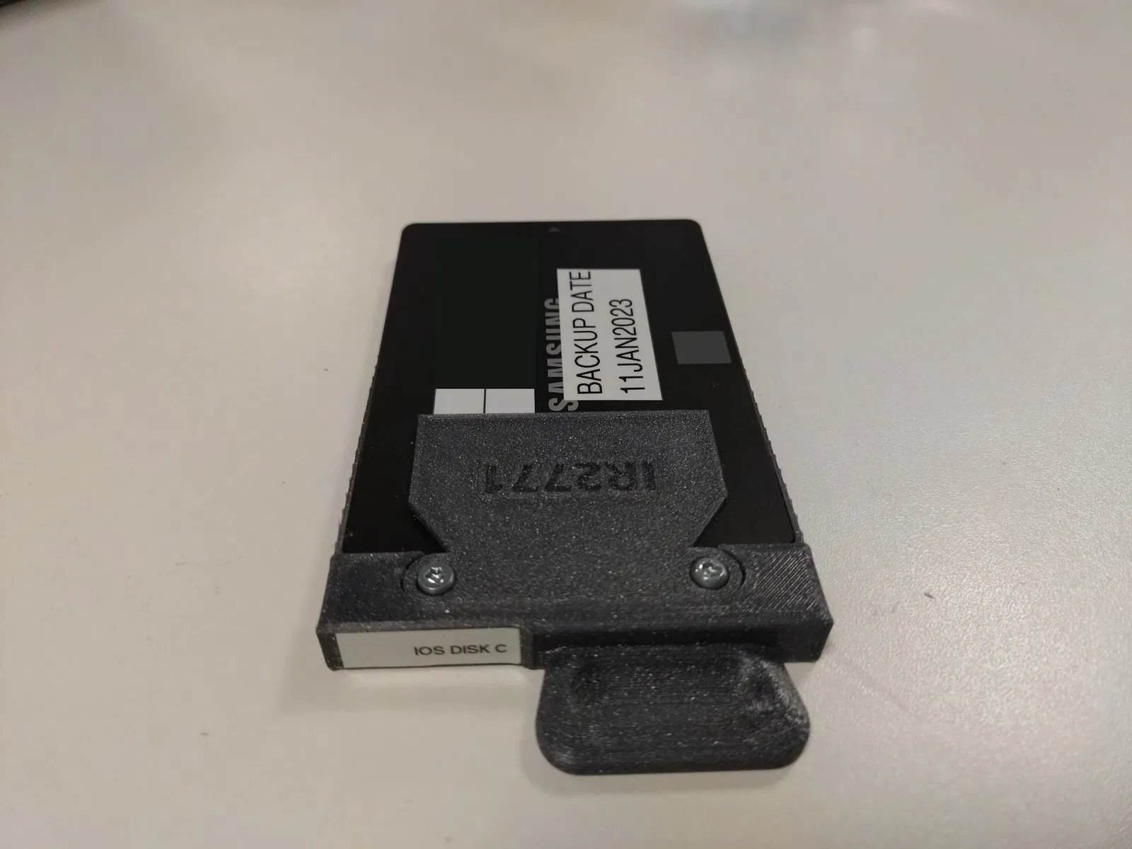Đây là cái khay đơn giản cho IR2771-S3, không có khóa nhưng mà xài ok để thêm ổ đĩa dự phòng nha. Mấy cái lỗ vừa với ốc vít 3mm, để gắn cho khít thì có thể thêm miếng đệm ở dưới nắp trên. Băng keo hai mặt cũng là một ý hay để xài dưới nắp và dưới đế, tại vì không có ốc vít để gắn ổ cứng.