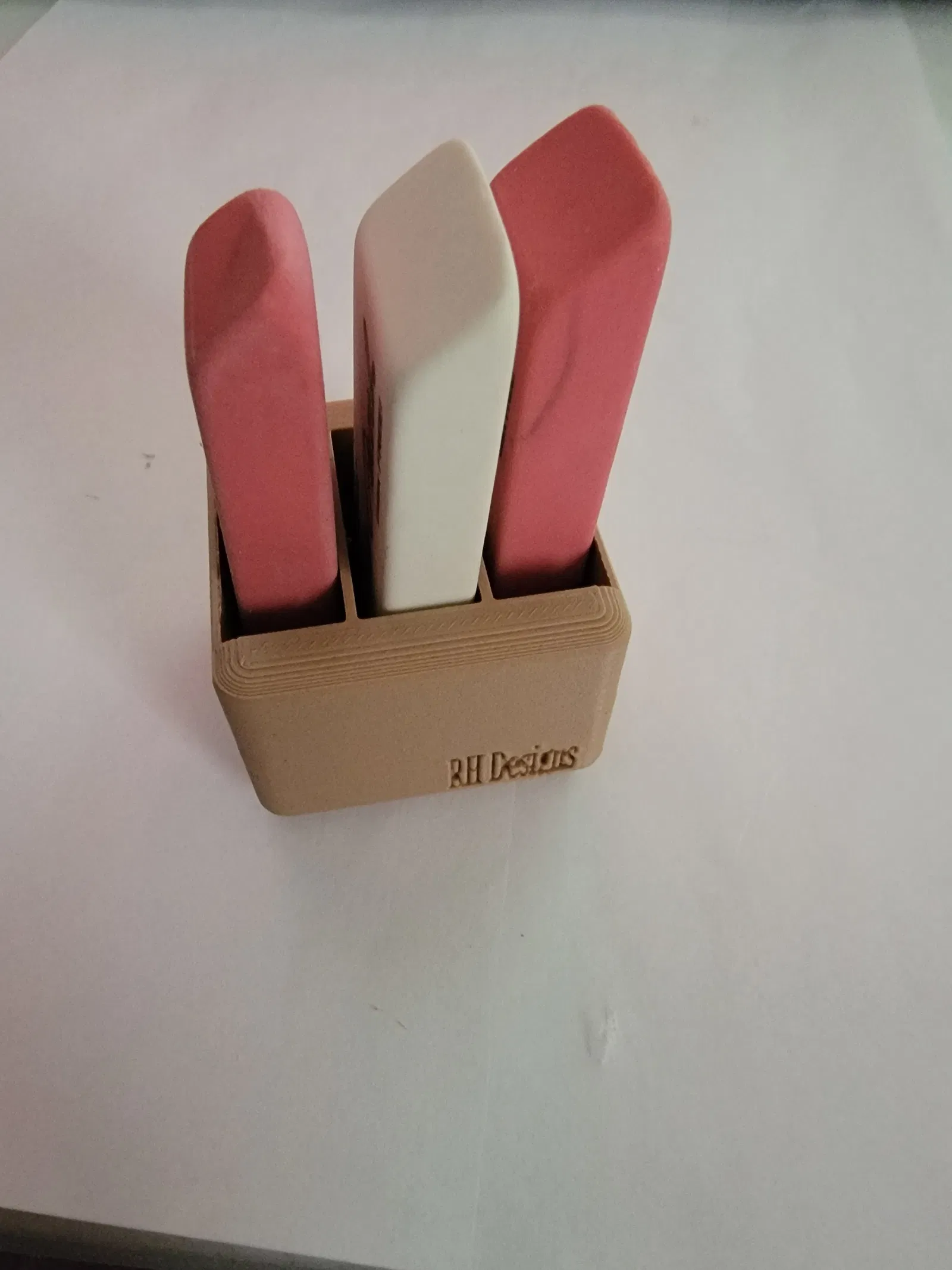 Tui cần chỗ để đựng ba cục tẩy nên đã thiết kế cái này. Hy vọng nó sẽ hữu ích cho ai đó. Không có yêu cầu in ấn đặc biệt nào.