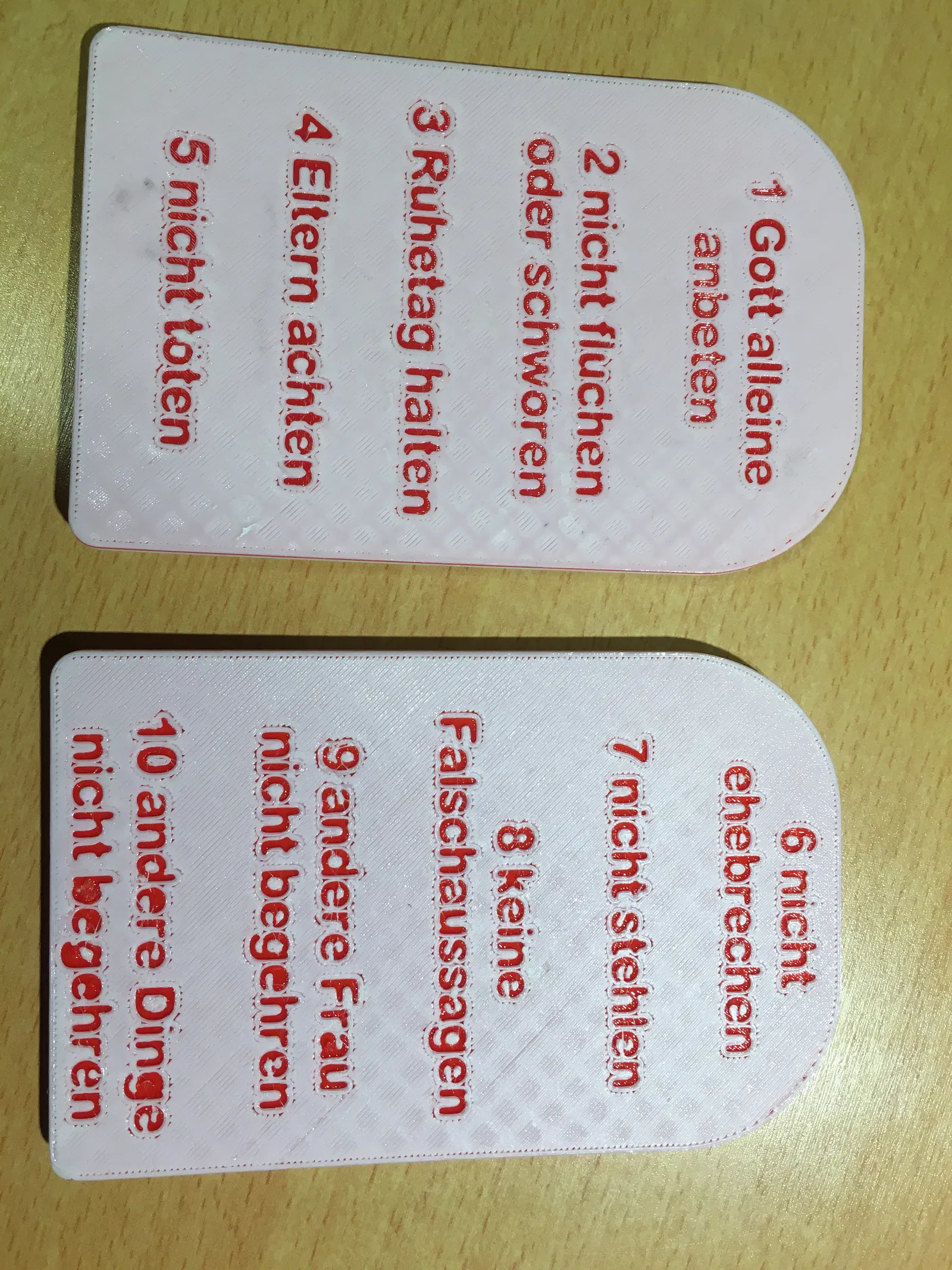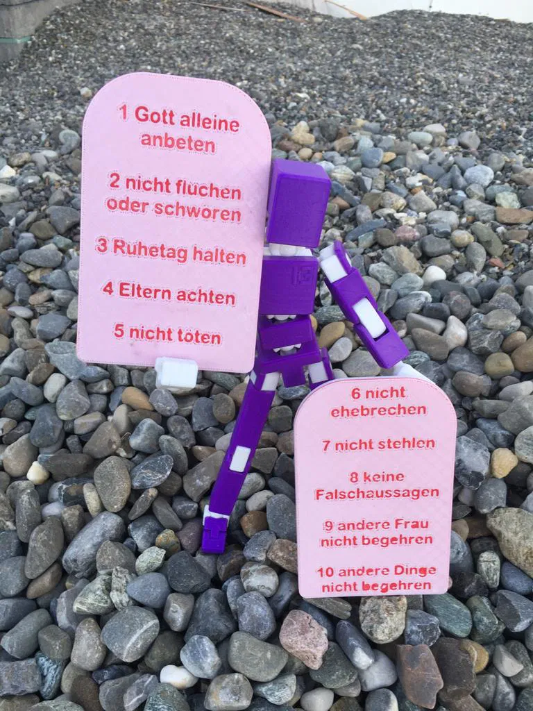 Bảng 10 Điều Răn cho mô hình EASY 13 (in tỷ lệ 200%). Mô hình này cho phép EASY 13 cầm giữ các bảng luật này, mang đến một phiên bản độc đáo và ý nghĩa của câu chuyện về Moses và 10 điều răn.