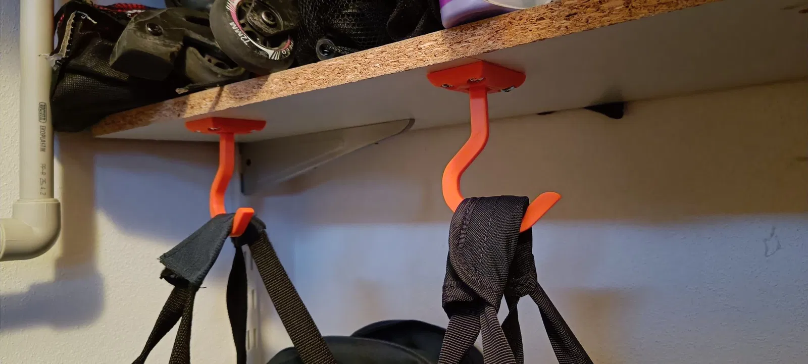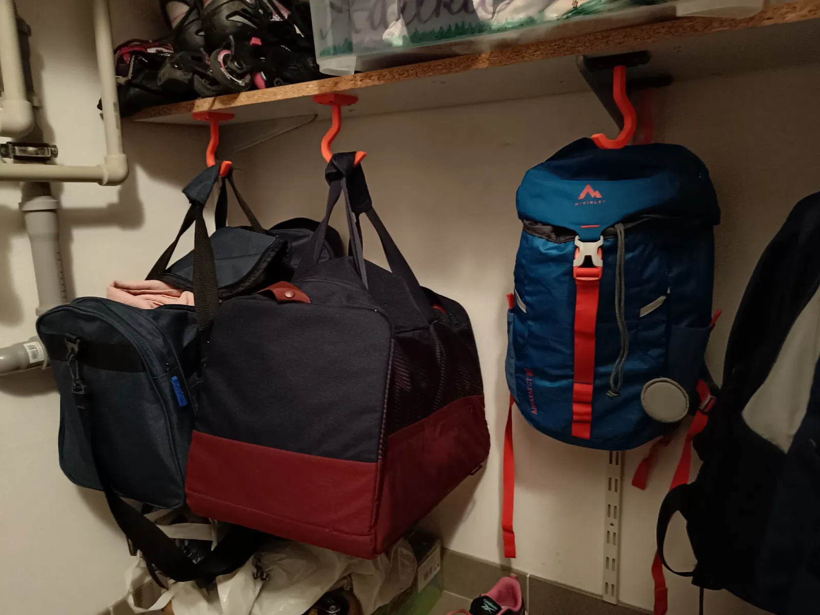 Móc để treo ba lô dưới kệ. Móc để treo túi.