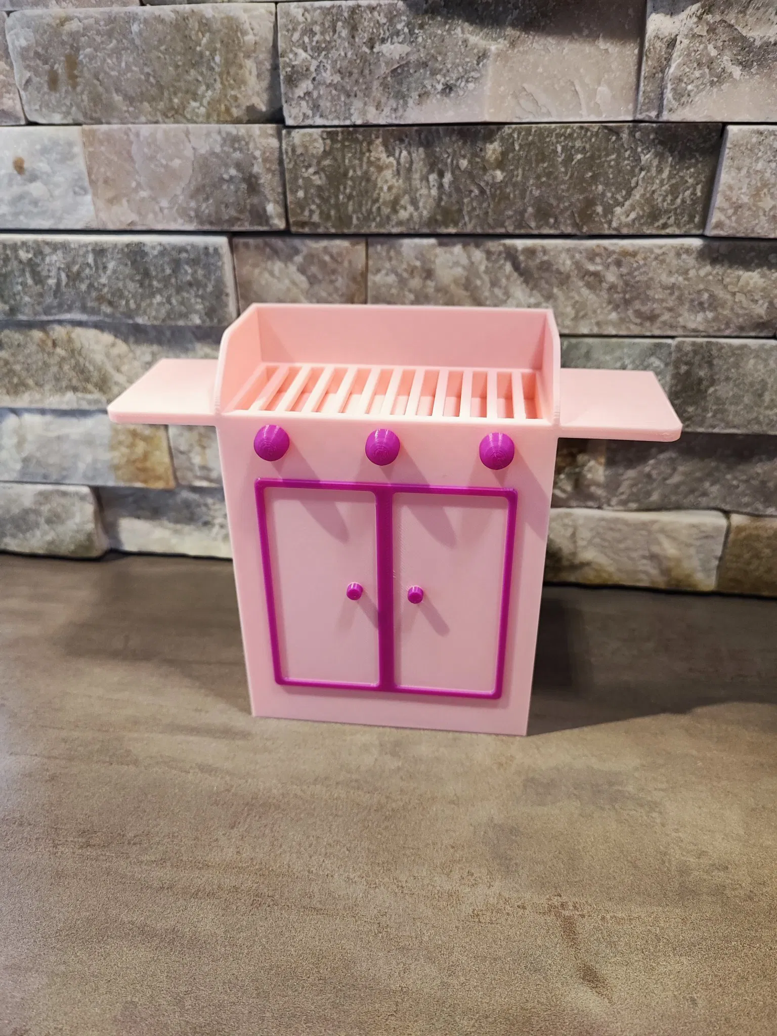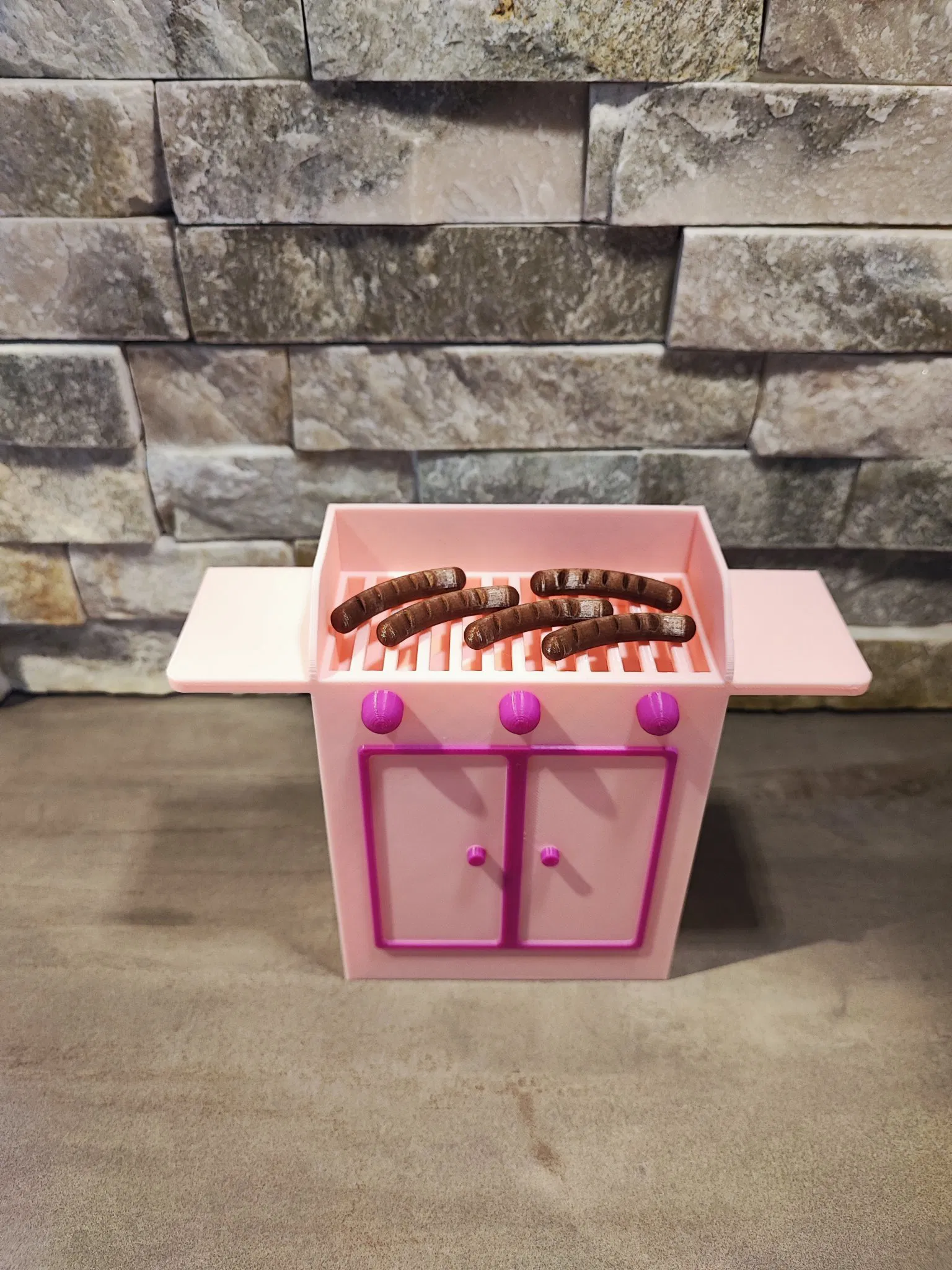 Tôi đã thiết kế một cái bếp nướng cho Barbie ở đây. Cửa không thể mở được. Nếu tất cả được in cùng nhau, bếp nướng phải được in theo chiều ngang mà không cần hỗ trợ. Cũng có xúc xích ;)