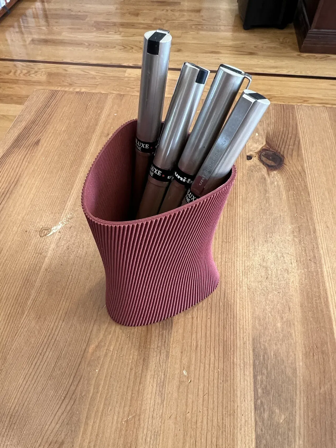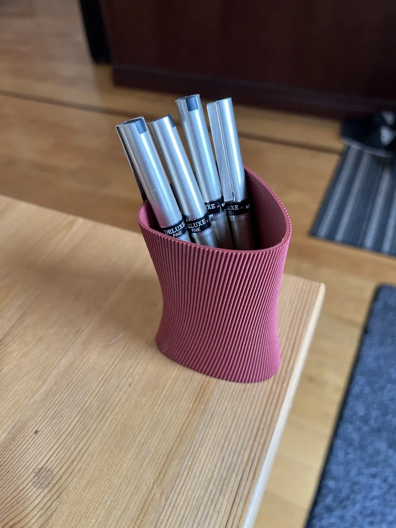 Trist là một giá đỡ bút hiện đại và thanh lịch kết hợp giữa hình dạng tam giác mượt mà và bề mặt rib xoắn. Các gân tạo ra sự tương phản giữa ánh sáng và bóng tối, cũng như một cảm giác cầm nắm thoải mái cho các ngón tay của bạn. Sự xoắn trong thiết kế thêm một chút phong cách và cá tính trong khi giá đỡ lưu trữ một lượng lớn dụng cụ viết. Trist là một giải pháp đơn giản và thanh lịch cho việc tổ chức bàn làm việc của bạn.