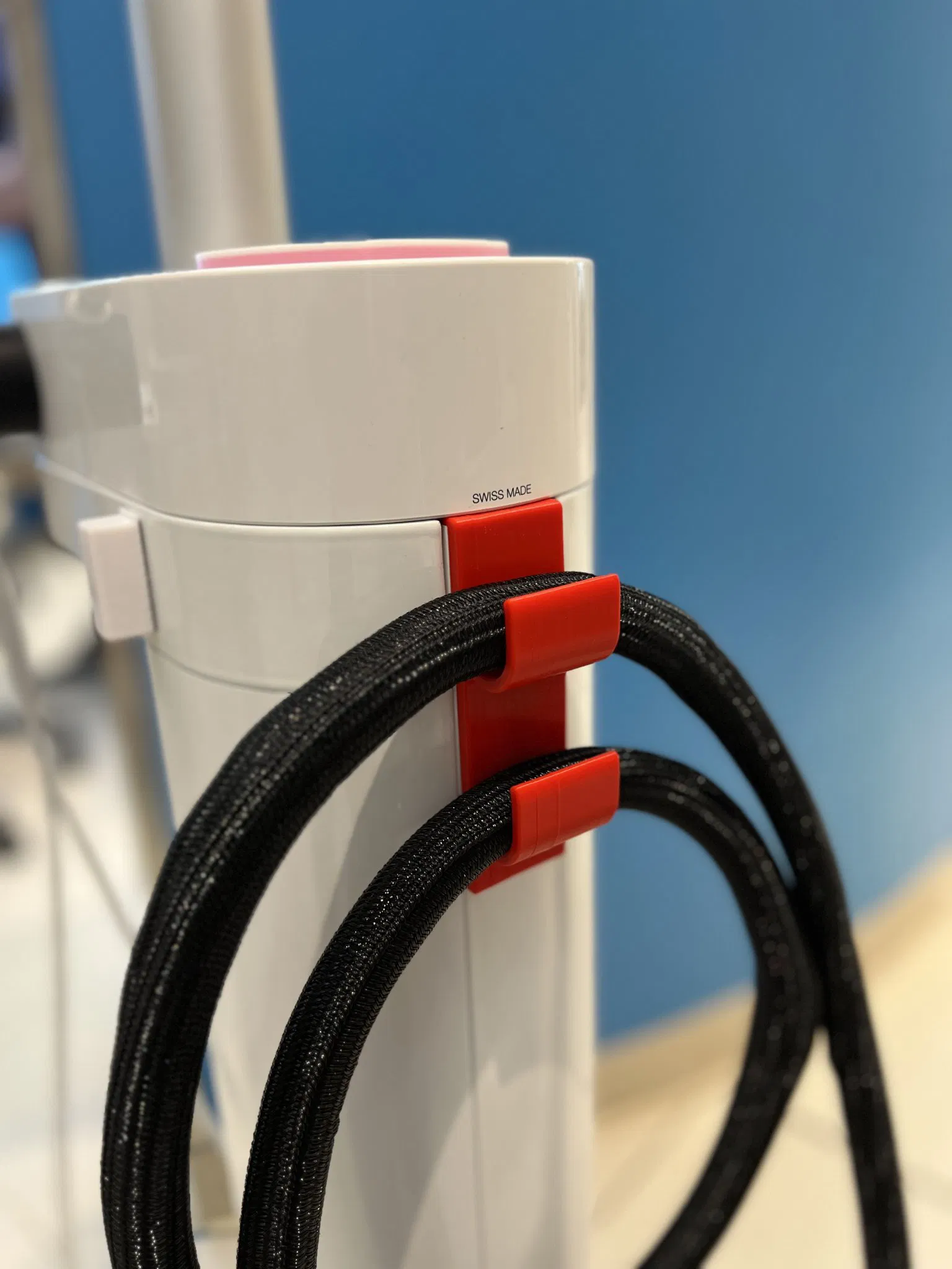 Có được cách tốt nhất để thực hiện các chuyến thăm vệ sinh trong văn phòng của tôi thật tuyệt vời. EMS GBT Airflow là điều tốt nhất đến với bộ phận vệ sinh trong 50 năm qua. Chúng tôi có các xe GBT, mà tôi rất khuyên dùng. Nhưng trong những lúc chúng tôi cần di chuyển thiết bị ra khỏi chỗ, chúng tôi đã nhanh chóng phát hiện ra rằng không có quản lý dây trên thiết bị. Vì vậy, điều xảy ra là các dây bị treo trên thiết bị. XẤU, điều đó có nghĩa là các dây đã nằm trên sàn giờ đây nằm trên đỉnh của thiết bị. Tôi đã thiết kế giá đỡ dây này để được đặt ở phía sau của thiết bị mà không làm thay đổi thiết bị. Một ít băng dính hai mặt giữ nó ở vị trí.