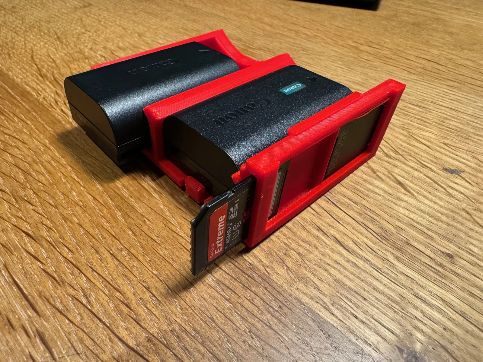 Đã thêm tùy chọn lưu trữ thẻ SD cho thẻ SD kích thước đầy đủ vào hộp pin đôi. Tôi đã lấy một thiết kế khác từ (), cắt bỏ lỗ móc chìa khóa và thêm một số thanh để bảo vệ các giao diện của thẻ.