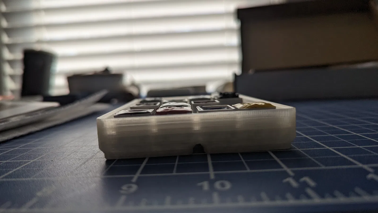 Ảnh cho thấy biến thể 3x2x2 trong Inland Natural PLA, chiều cao lớp 0.2mm. Các khay nửa trong ảnh có nam châm gắn liền, và ngồi cao hơn một chút so với vị trí bình thường.