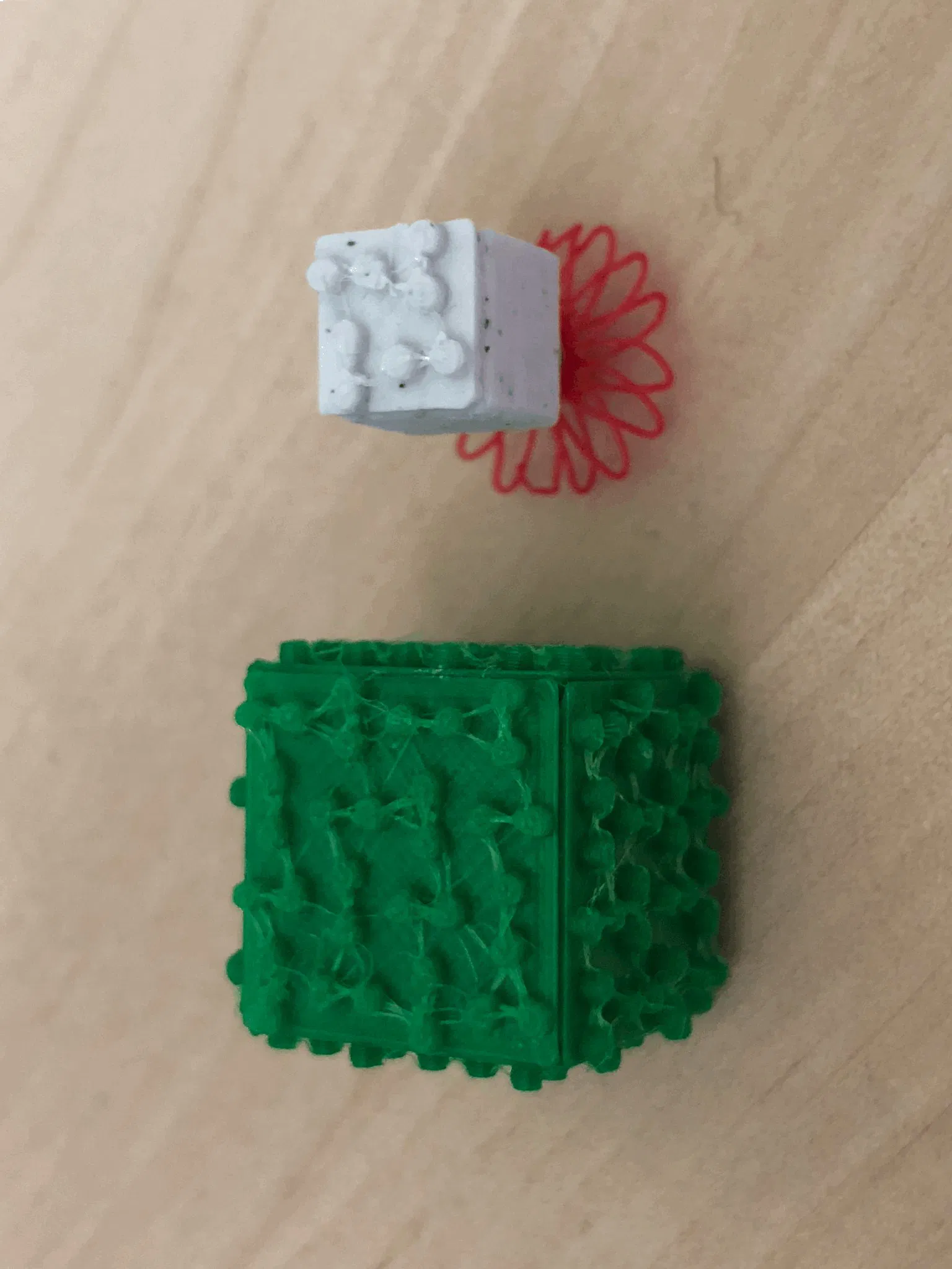 In 6 tấm bên và một lõi cho mỗi khối. Tôi đề xuất chiều cao lớp 0.15mm, và bạn cần tạo ra đường viền aracne (hoặc một bức tường được điều chỉnh tốt). Sau khi in, bạn có thể ghép các tấm lại với nhau bằng keo siêu dính.
