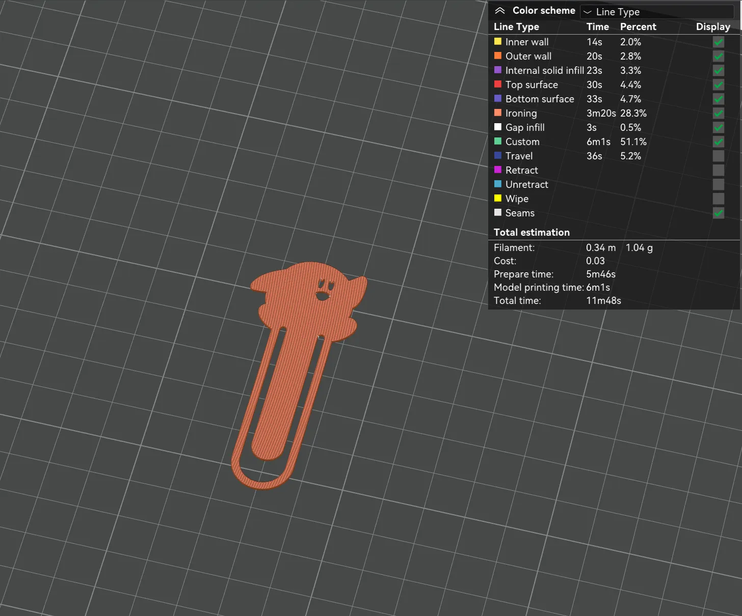 Sử dụng ủi trên cùng để có dấu trang trông đẹp nhất. Chiều cao lớp 0.2 in tốt. Phiên bản mini là một bản in nặng 1 gram. 15% độ đầy, không có viền.