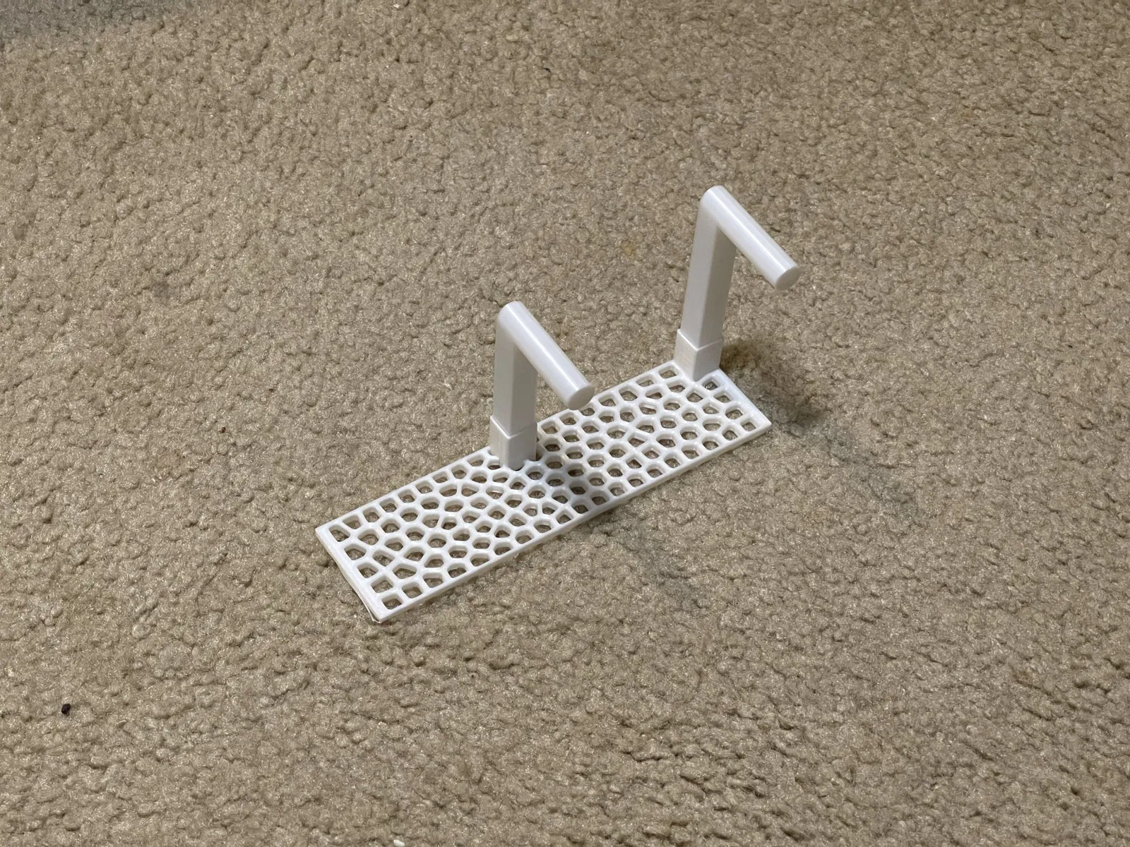Việc làm cho đơn vị này thành một phần in duy nhất sẽ cần hỗ trợ, vì vậy tôi đã tạo ra ba mảnh. Các bộ phận hỗ trợ vừa khít vào các lỗ ở đáy. Khoảng cách giữa các mặt là 0,3 mm. Điều đó có vẻ hoạt động tốt.