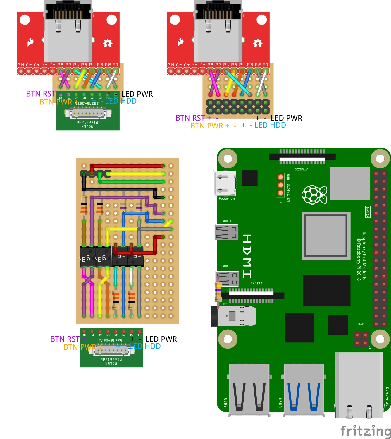 - Một cáp USB-C rất mỏng (xem ảnh) Tôi đã mua tất cả những thứ này trên AliExpress, các danh sách ở đó đang thay đổi nhanh chóng, vì vậy tôi sẽ không cung cấp bất kỳ liên kết nào. Nếu có sự quan tâm, tôi có thể xuất bản các phiên bản logo đa màu. Ban đầu nó được thiết kế cho đa màu. Bạn sẽ tìm thấy sơ đồ tôi đã sử dụng và hình ảnh của các thành phần trong thư mục bổ sung. Bạn cần cắt một chút phần RJ45 Breakout để nó vừa vặn bên cạnh C790. Kết nối RJ45 PCIE nên tương thích với phiên bản gốc. PCIE Insert được remix từ: