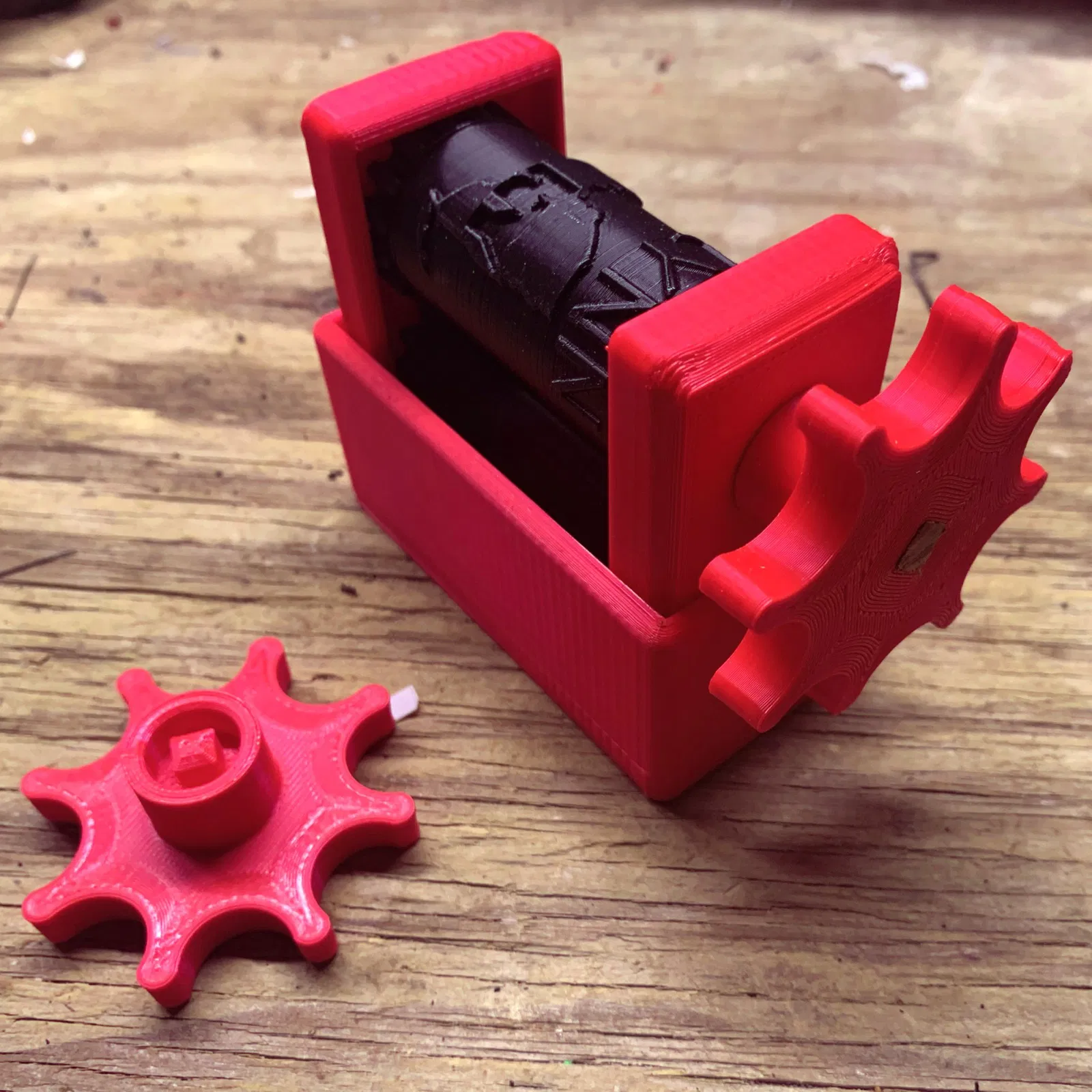 In lựa chọn tay cầm (một tay cầm có trục nhựa riêng, tay cầm khác có lỗ cho trục .25 x .25. Tay cầm trong hình có trục gỗ làm từ gỗ đen) Tôi khuyên bạn nên chọn tay cầm có trục trừ khi bạn đang sử dụng nhựa thật mạnh (Nếu làm cái này bằng PLA, hãy sử dụng tay cầm yêu cầu trục gỗ hoặc kim loại)