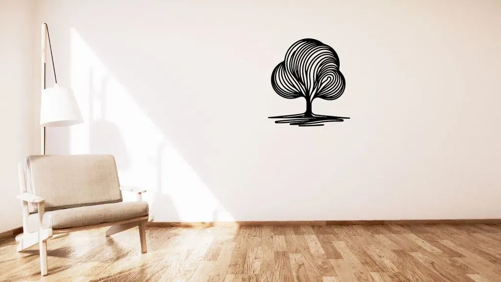 Một bức tranh tối giản tuyệt đẹp của một cái cây trên tường.