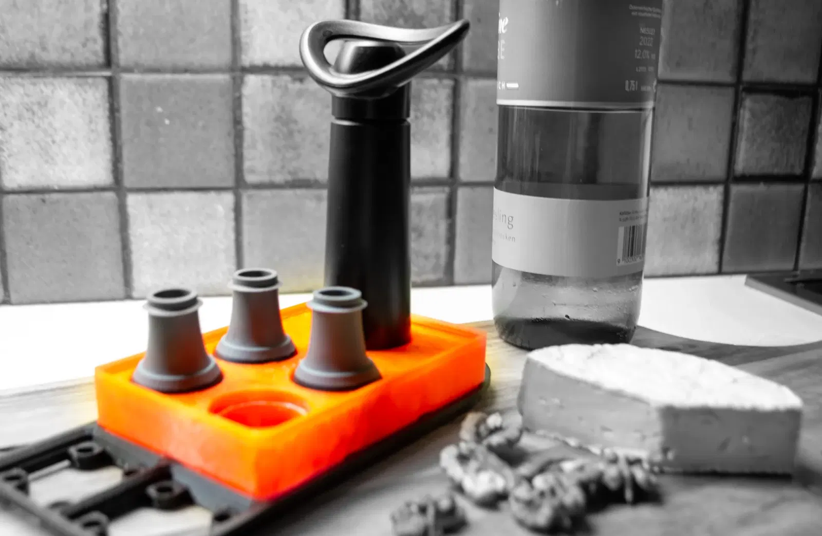 Xin chào các tín đồ yêu rượu và những người đam mê tổ chức! Tôi rất vui được chia sẻ sản phẩm sáng tạo in 3D mới nhất của mình hoàn hảo cho hệ thống Gridfinity – một giá đỡ 3x2, được thiết kế đặc biệt để lưu trữ gọn gàng máy bơm chân không Vacu Vin của bạn cùng với bốn nút chân không của nó.