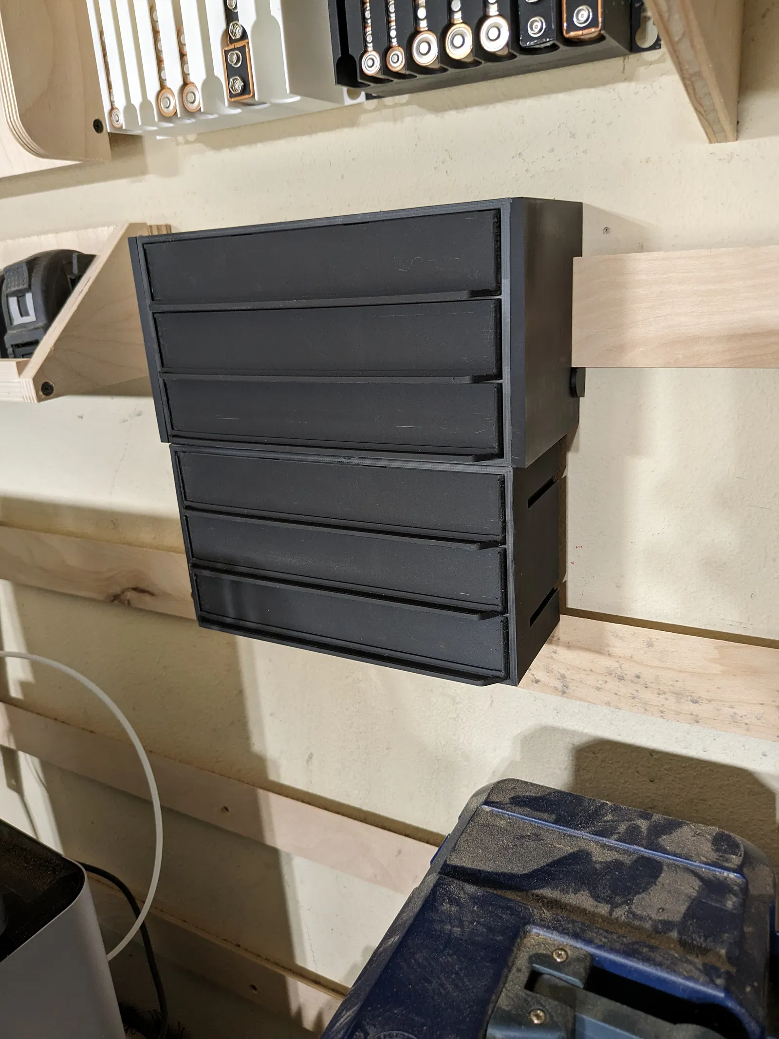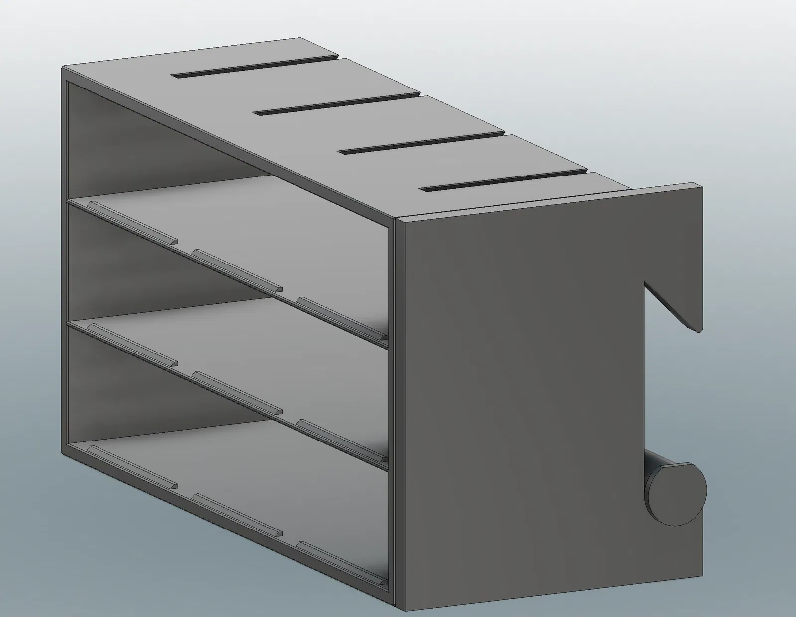 Cho phép treo kệ 008 lên tường bằng thanh treo kiểu Pháp (french cleat). Mô hình này cũng bao gồm một trụ khóa để đảm bảo rằng kệ không bị rơi ra khỏi tường khi bạn mở ngăn kéo.