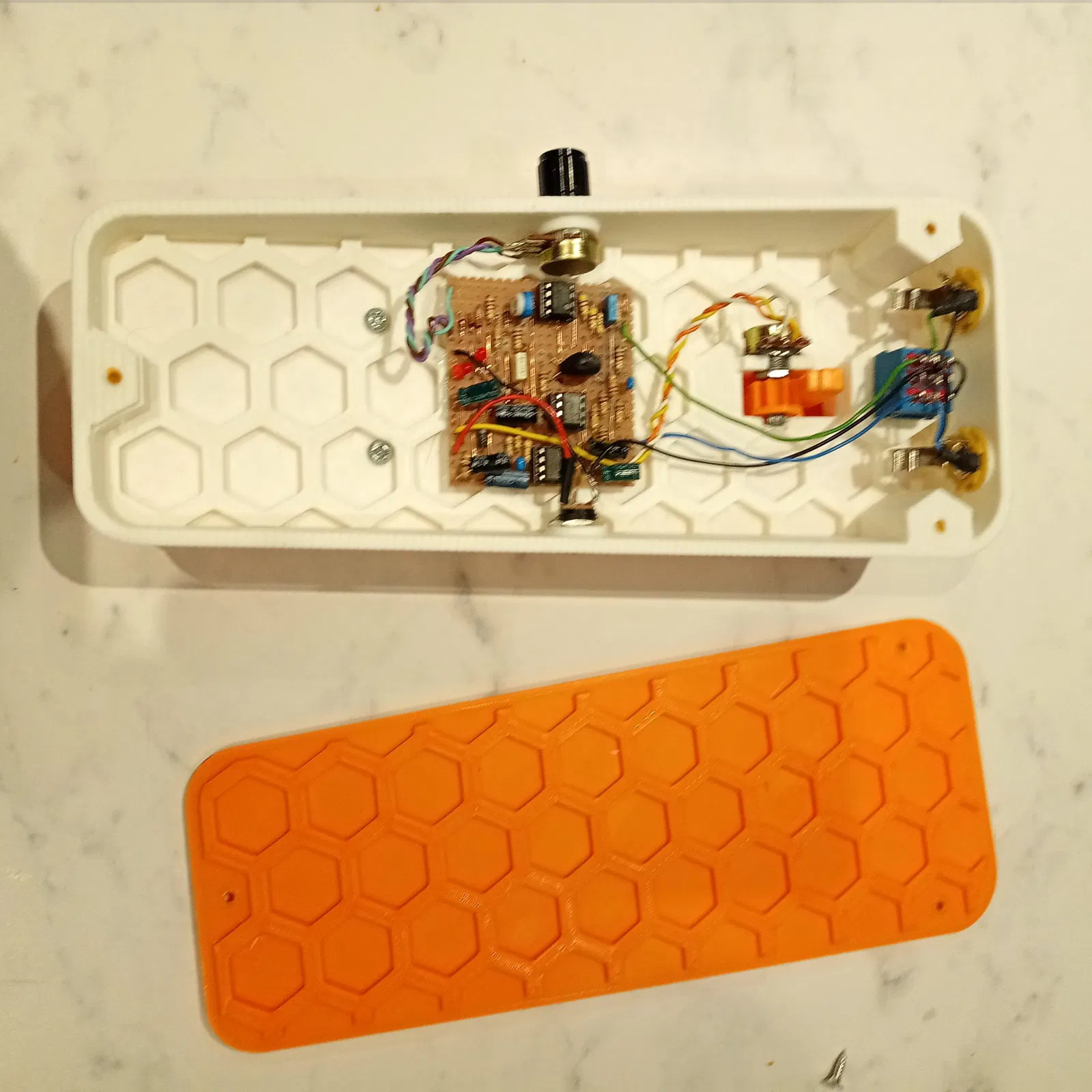 Nguyên mẫu được hiển thị trong các bức ảnh chứa một Madbean WIGL vibe, với pedal điều khiển Tốc độ và độ sâu điều chỉnh ở bên, nhưng bạn có thể cấu hình nó theo nhu cầu của bạn bằng cách sử dụng các đầu nối.