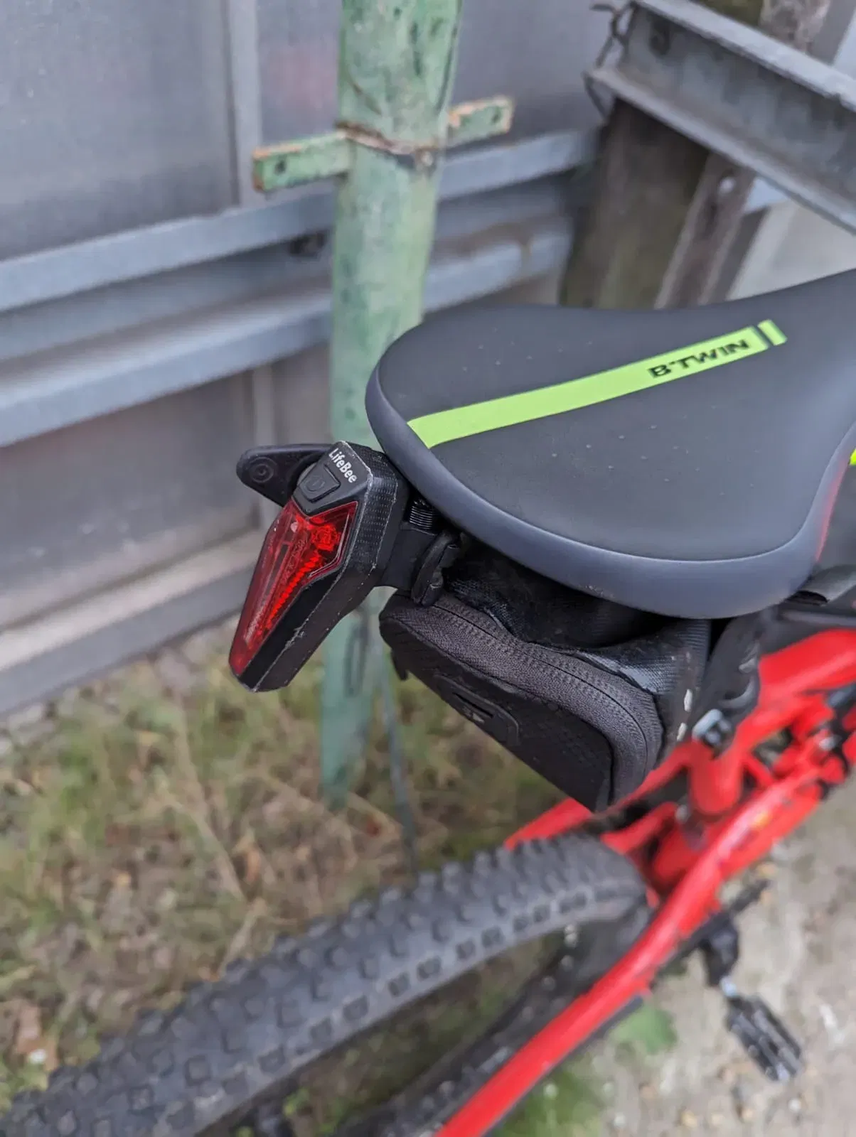 Đèn hậu xe đạp gắn vào yên, để gắn vào lỗ vít. Dành cho dây đai ngang.