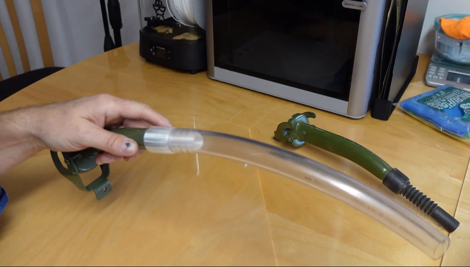 Sửa chữa một Jerry bị phá vỡ có thể phun ra. Thay thế đầu cao su bằng vòi nhiên liệu linh hoạt mờ