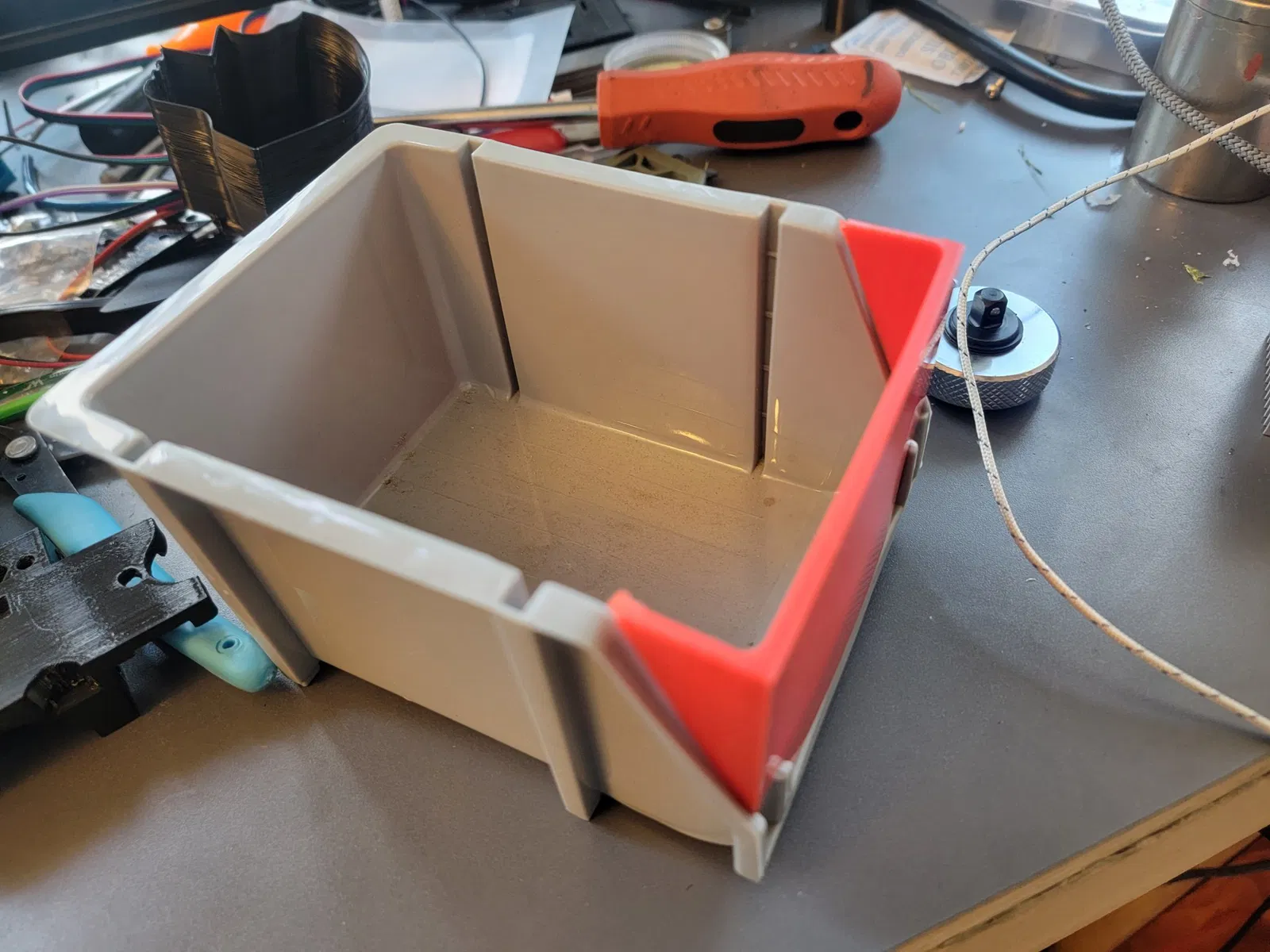 Tôi đã tìm thấy một rào cản thùng tuyệt vời khác mà ai đó thiết kế cho các thùng Akro tiêu chuẩn, nhưng nó không vừa với các thùng HF màu xám nhỏ, vì vậy tôi đã thiết kế cái này. Nó vừa khít trong các thùng của tôi và không cần phải dán vào hay gì cả, nhưng nếu chúng lỏng lẻo thì một chút keo nóng hoặc gì đó sẽ giữ nó lại. Tôi đã đính kèm tệp bước để bạn có thể chỉnh sửa nếu cần.