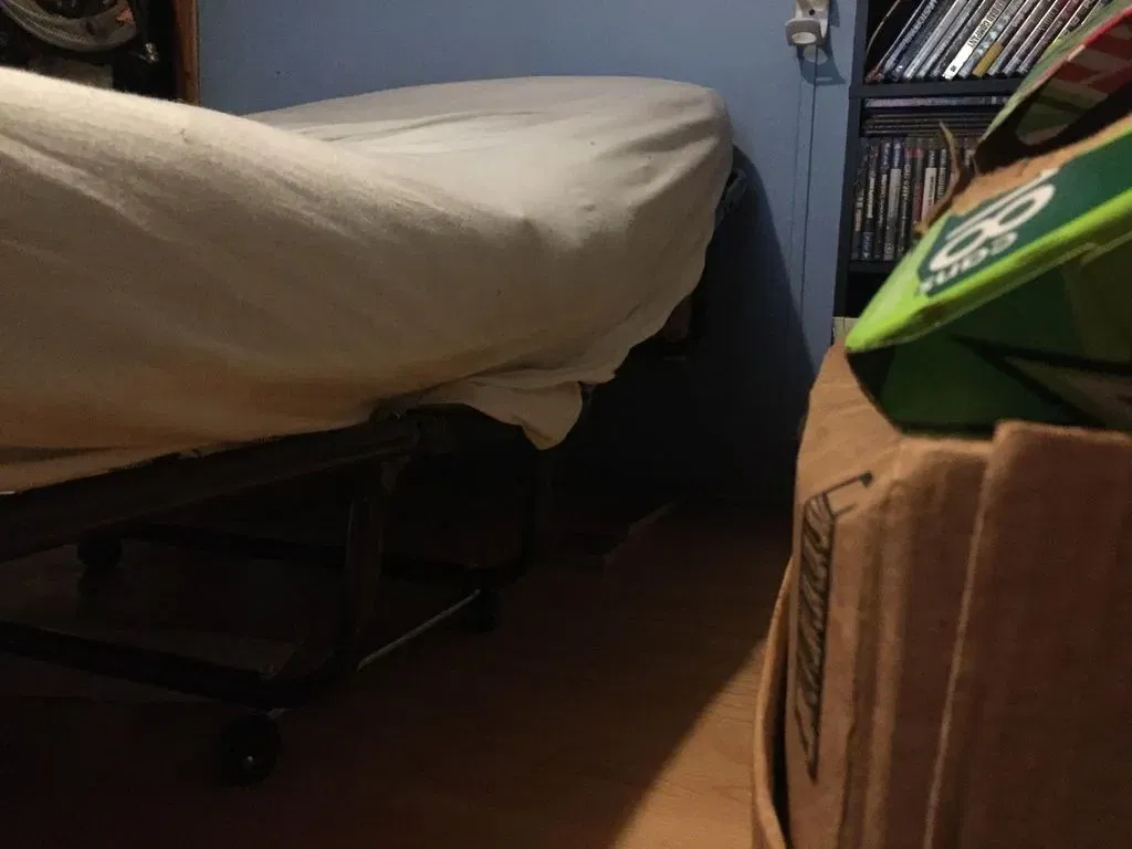 nó luôn là một không gian chật chội trong khu vực làm việc của tôi và tôi luôn giữ một cái ghế ngả trong phòng để tôi có thể chợp mắt hoặc chỉ đơn giản là ngủ ở đó vào ban đêm. nó đã hoạt động tuyệt vời trong nhiều năm nhưng gần đây tôi đã có một số đồ chơi mới đã chiếm hết mọi không gian trống của tôi và nó đã làm mọi thứ trở nên khó khăn vì nó đã chiếm hết mọi không gian của tôi nên cái ghế giờ đây đã cản trở. đầu tiên tôi nghĩ, ok tôi sẽ bỏ nó đi và chỉ bắt đầu ngủ trên giường của mình nhưng tôi dành quá nhiều thời gian ở đây và trên máy tính của mình nên với cái ghế tôi đã ngã ngủ trong ghế khi đang làm việc trên máy tính, điều đó khiến cho buổi sáng và phần còn lại của ngày trở nên rất khó khăn. vì vậy tôi đã nghĩ tại sao không xây dựng một cái giường có thể gập lại vào tường, bắt đầu tìm hiểu về nó và điều đó sẽ hoạt động nhưng tôi đã tìm thấy một cái giường cuộn trên amazon, tôi nhớ bố mẹ tôi luôn có một cái cho khách và nó thường ở trong tủ quần áo của họ nên tôi đã mua một cái, nó không phải là cái giường tốt nhất nhưng với một chút công việc tôi sẽ có nó ngủ tốt hoặc "tốt hơn" (xin lỗi) hơn cả cái giường thực sự của tôi. điều đầu tiên là làm một cái gì đó để giữ cái giường sát vào tường trong khi tôi đang ngủ vì nó có bánh xe nên rất dễ di chuyển khi tôi đang nằm trong đó. sau khi làm cái giá đỡ và gắn nó, tôi nhận ra tôi có thể làm nhiều cái và gắn ở các độ cao khác nhau và nó thực sự sẽ hoạt động như các vị trí khác nhau cho cái giường. tôi chỉ mới in ra một cái hiện tại nhưng tôi đã gắn nó ở 3 độ cao khác nhau để thử nghiệm và nó hoạt động. bây giờ điều này không làm cho cái giường giống như một cái giường điều chỉnh như bạn sẽ có trong bệnh viện vì họ có 3 điểm có thể di chuyển và cái này chỉ gập ở giữa nhưng nó nâng đầu lên và chỉ làm mọi thứ thoải mái hơn một chút. có lẽ không phải là giải pháp tốt nhất nhưng nó đang hoạt động cho tôi cho đến giờ.
