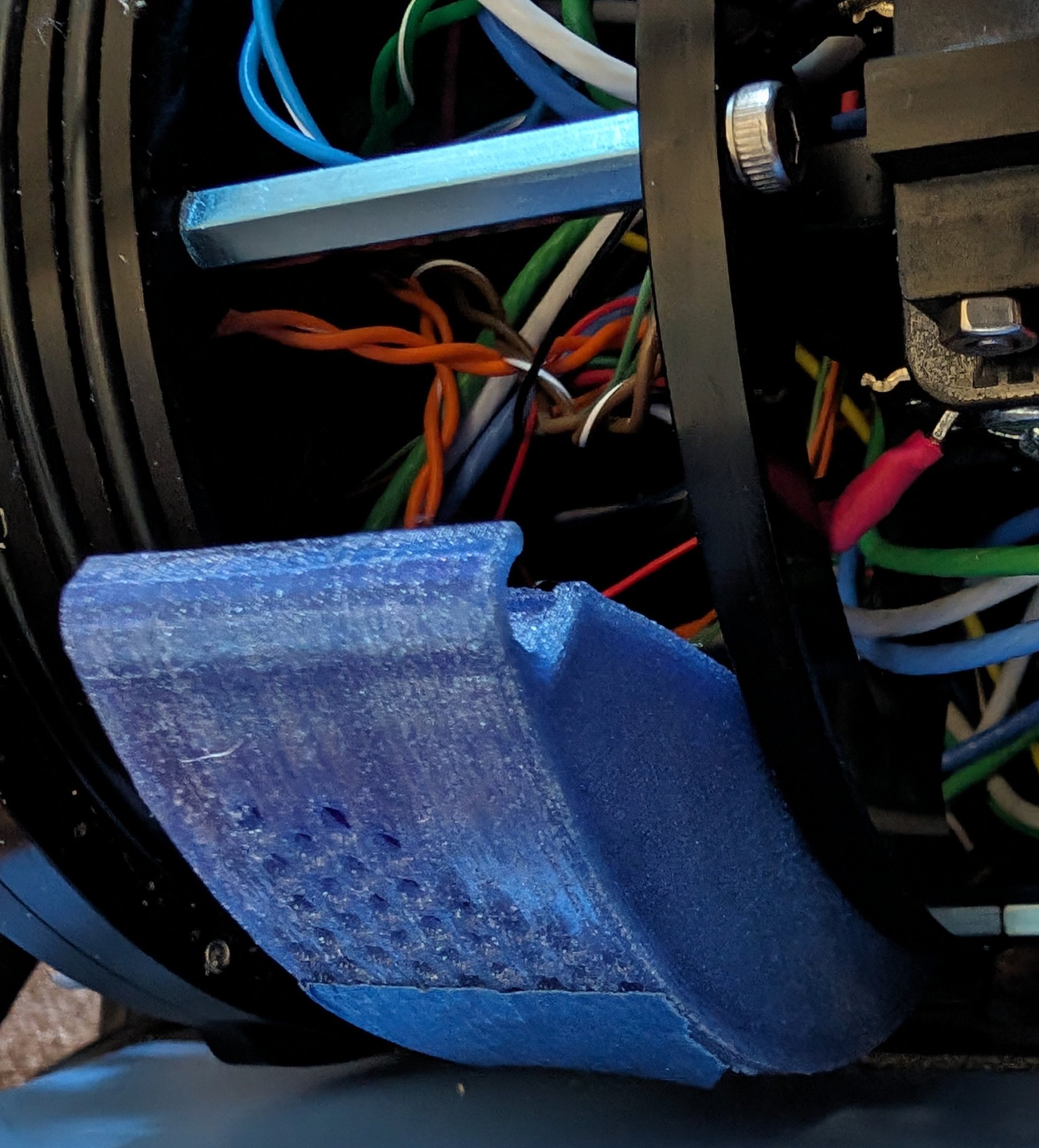 Tải desiccant tái sử dụng vào giá đỡ này. Dán một miếng băng quanh nắp để giữ cho bất kỳ cái nào không thoát ra ngoài. Kẹp một đầu quanh phần đỡ ở phía sau của vỏ BlueROV2, và xoay phần đó vào trong vỏ để kẹp vào phần đỡ bên cạnh. Đóng lại phương tiện của bạn và giữ cho độ ẩm không vào!