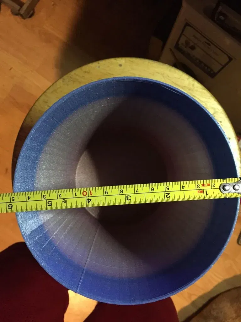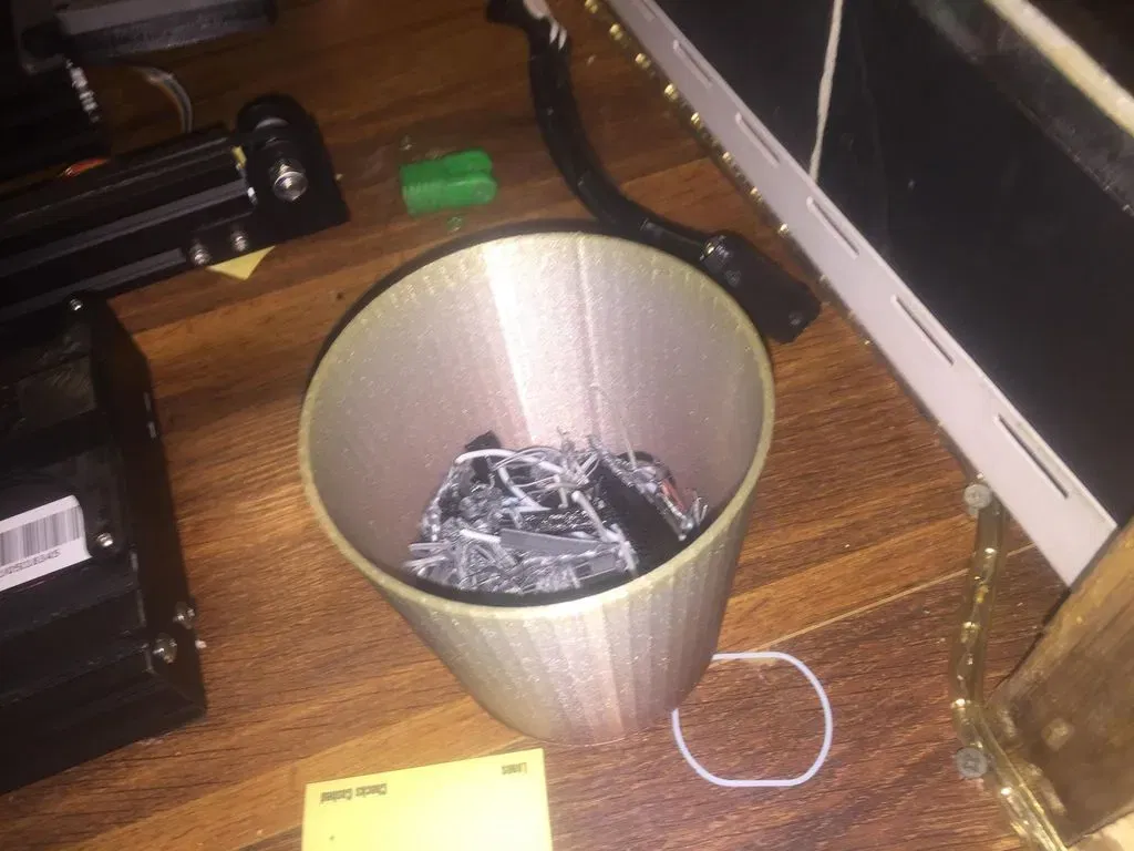 cái mà cao hơn 170mm tôi đã phóng to cái 150mm lên kích thước này nên bạn cũng có thể làm tương tự nếu cần lớn hơn nhưng điều này cũng sẽ tăng độ dày của tường. có rất nhiều thùng rác bạn có thể tải xuống được thiết kế để in ở chế độ vase trong slicer và điều đó hoạt động cho những ai có vòi phun lớn. bạn có thể in chúng với vòi phun tiêu chuẩn .4 nhưng độ dày tường bị giới hạn bởi kích thước vòi phun nên tường đơn sẽ có độ dày là .4mm nên chúng có thể hơi mỏng manh. có một vài điều bạn có thể làm để giúp giải quyết vấn đề này nhưng tôi đã cảm thấy mệt mỏi với những thùng rác trong buồng của tôi bị nứt hoặc vỡ theo thời gian nên tôi đã thiết kế những cái này để sử dụng một số filament cũ mà tôi có sẵn đang bắt đầu trở nên giòn và vỡ trên cuộn nên tôi cần phải sử dụng nó và tôi cần thay thế một số thùng rác cũ trong buồng của mình nên mọi thứ đều ổn. tôi đã làm những cái này với những chiều cao khác nhau và tường của thùng rác nên khoảng 1mm dày nên đủ mạnh để không bị quá mỏng manh và nó không sử dụng nhiều filament để in chúng. cái lớn nhất cao 150mm và tất cả đều dưới 120gram filament, không nhớ chính xác số lượng ngay từ đầu nhưng đây là điều tôi đã cố gắng giảm bớt vì cái đầu tiên tôi nghĩ ra đã sử dụng gấp đôi lượng filament nên tôi đã có thể cắt nó một nửa trong khi giữ cho nó đủ mạnh để không bị nứt hoặc vỡ theo thời gian.